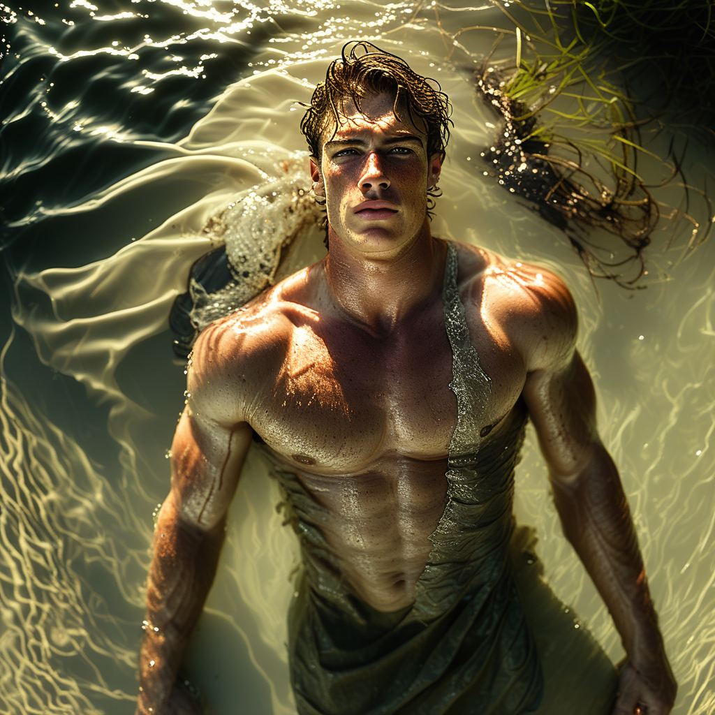 これは、想像上の海辺の世界に登場する男性と女性を描いた創造的なプロジェクトで、日常から脱却した作品に最適です。この世界は、魅惑的で美しい、魔法に満ちた世界です。