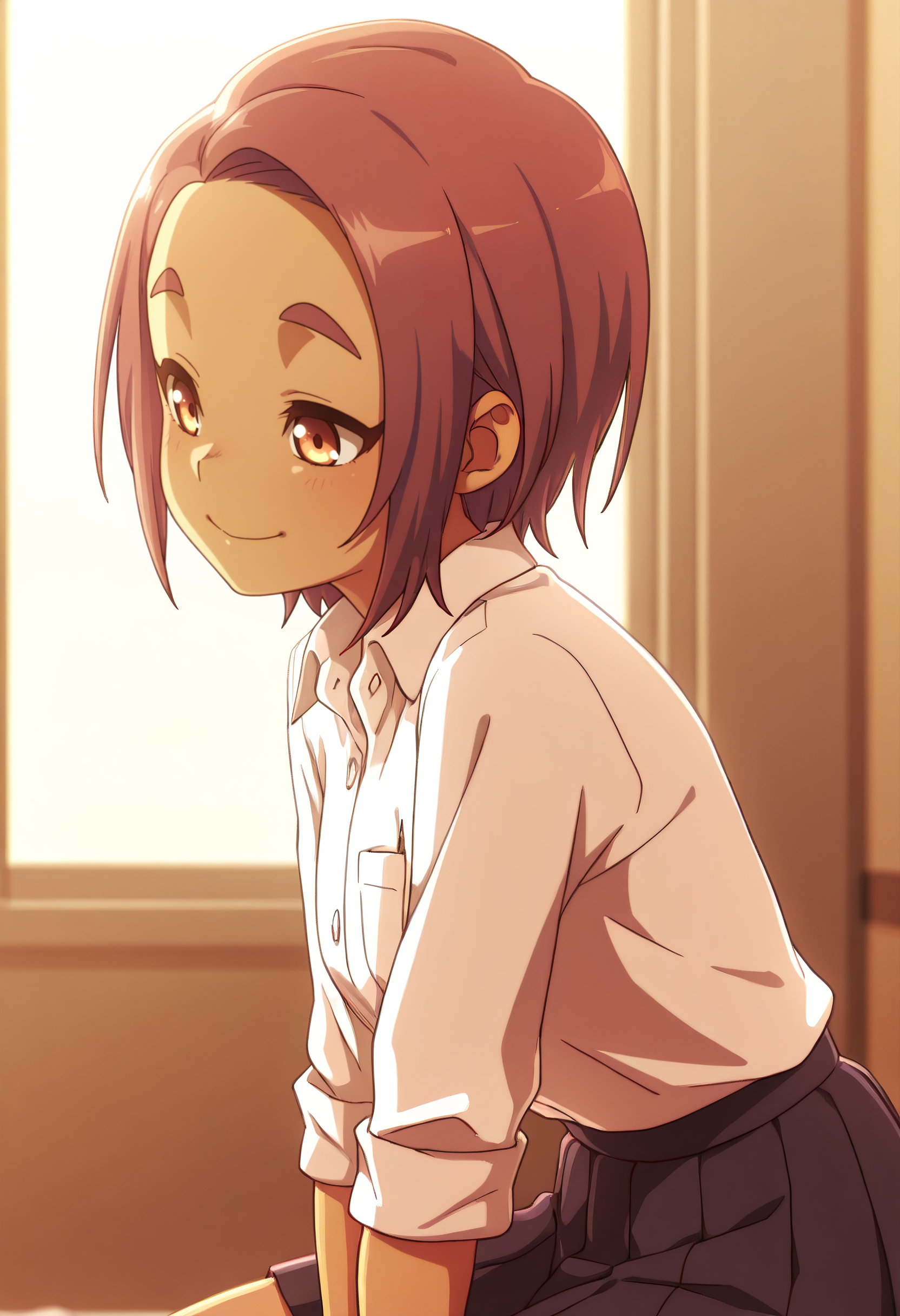 OkiYae, 단발, 갈색 눈, 갈색 머리, 두꺼운 눈썹, 이마, 짧은 눈썹