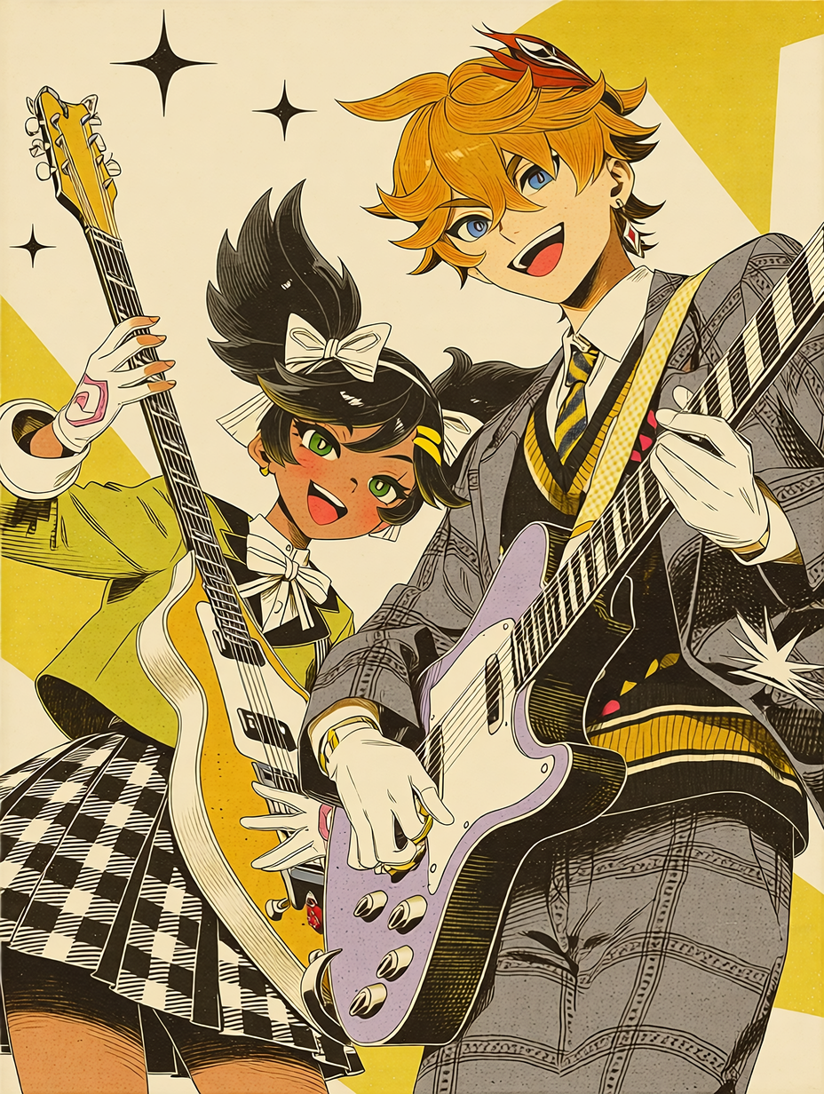 Flat color fills, Bold outlines, Minimal gradients, stippling hints, Stylized highlights