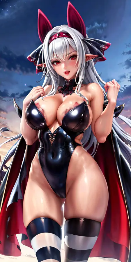 Main tag: vampirequeen,white hair,red eyes,very long hair.