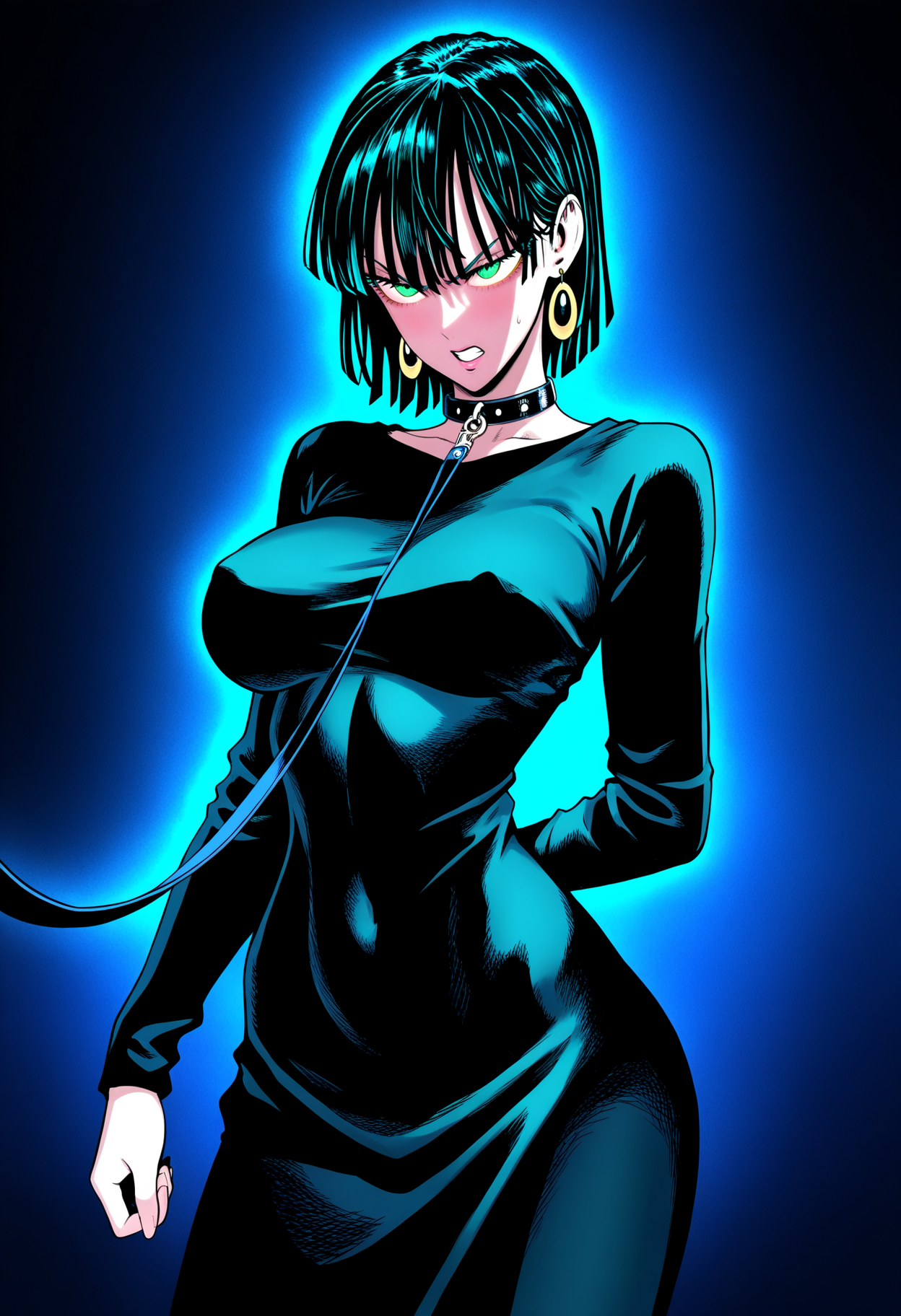 基本プロンプト:1girl, fubuki \(one-punch man\), black hair, short hair, green eyes, large breasts