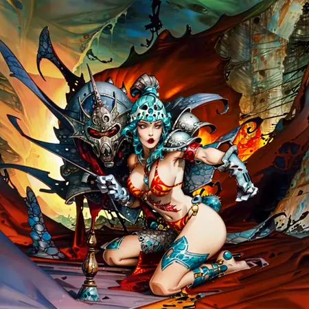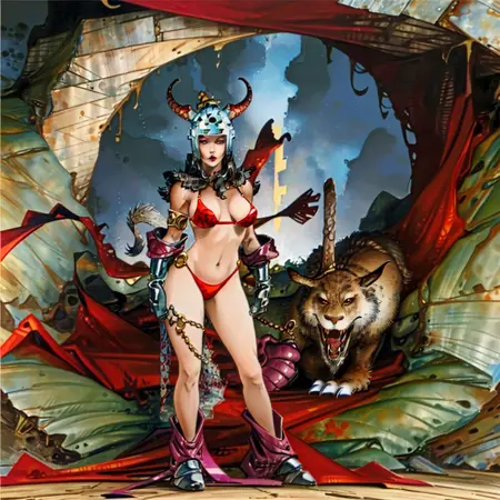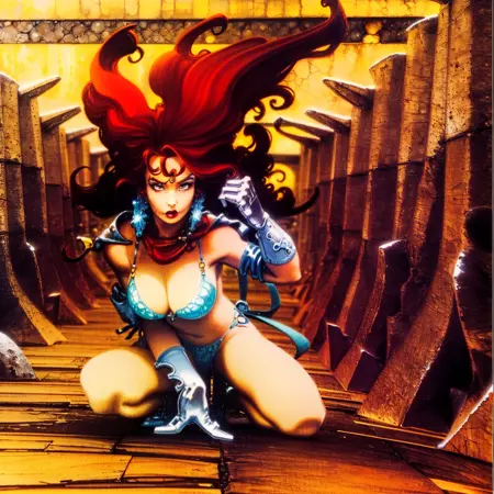 내 두 번째 공개 LoRA는 예술적 스타일입니다. 저는 애니메이션을 좋아하지만, 서양 예술 스타일도 더 필요하다고 생각합니다. 그래서 스페인 작가 알폰소 아스피리에 대해 만들어보기로 했습니다. 그는 에로틱한 '로르나' 만화로 잘 알려져 있으며, 1980년대와 1990년대에 200여 개 이상의 스페인 비디오 게임 커버를 디자인했습니다. 또한 고급 잡지인 '헤비 메탈'에 자신의 만화를 게재했고, 모트 같은 캐릭터를 중심으로 청소년 대상 만화도 제작했습니다. 그의 그래픽 스타일은 매우 독특하고 매력적입니다.