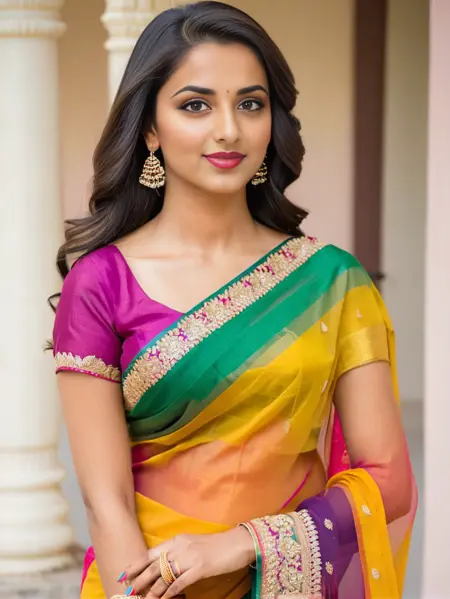 Amyrah, the charming girl next door, is a delightful blend of grace and warmth that captures the essence of her Indian heritage. With her almond-shaped eyes that sparkle like dark chocolate and her silky, ebony hair adorned with vibrant jasmine flowers, she exudes an enchanting aura. Amyrah's smile is a beacon of joy, radiating infectious happiness that lights up the entire neighborhood. Her fashion sense effortlessly fuses traditional elegance with a modern flair, showcasing colorful saris and intricately designed bangles that reflect her cultural pride. Approachable and kind, Amyrah has an innate ability to make everyone feel welcome, turning ordinary moments into cherished memories.