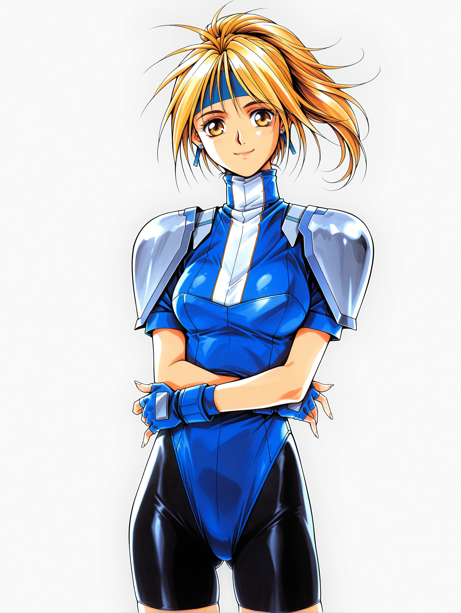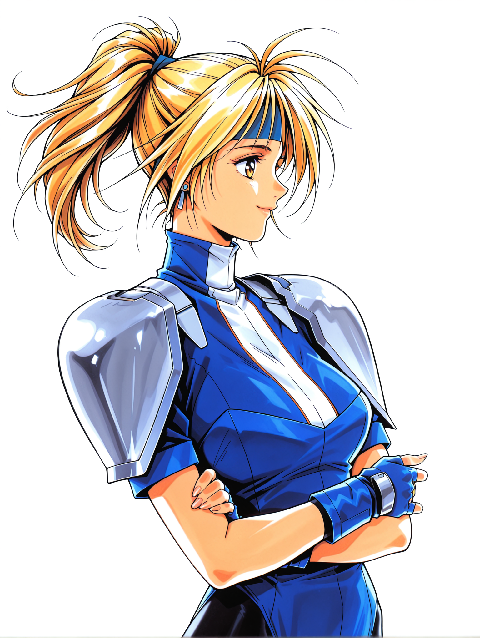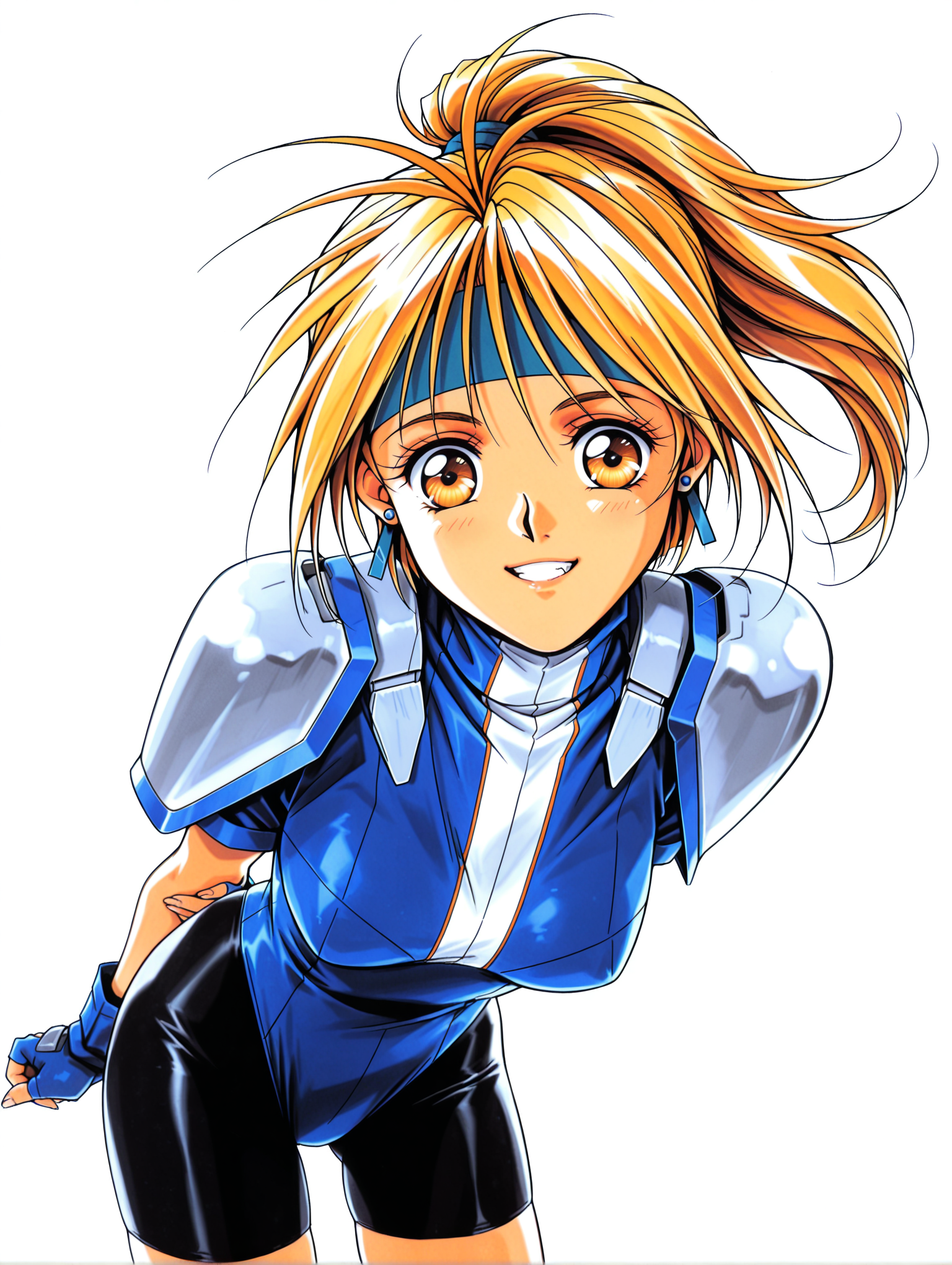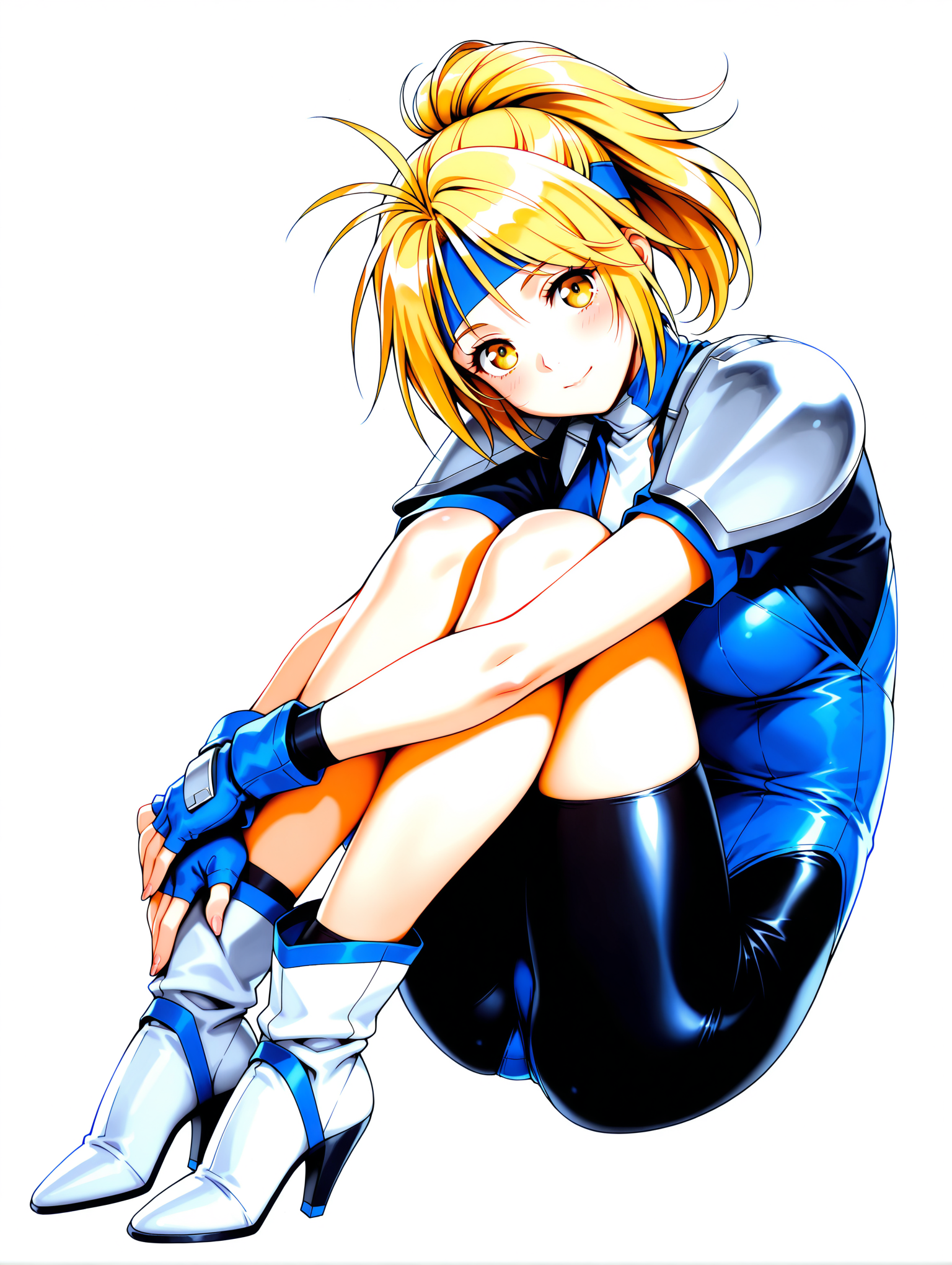 트리거 단어 ・faith_smollet,earrings,antenna hair,blue headband,high ponytail,blonde hair,yellow eyes,