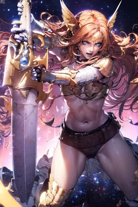 - トリガー:woman, 金色の翼付きヘルメット, 赤い髪, 金色の斧と剣, 剣, 金色の剣