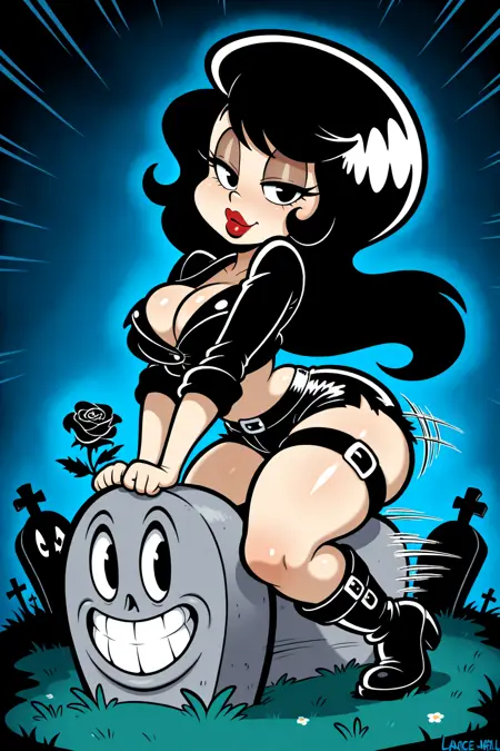 lineartfemalehalloweenskeletonwestern artinkmonochromesmokescenerystylesitting女人2dcartoonmonsterghostposterguitarcreatureridingmotorcyclegraveyardchasingpersonificationtop hatborderspot colorstylesbig hairground vehicleenglish textmotion lineswide-eyedemphasis linesink (medium)pinky outinstrumentsrubber hose animationpie eyeshollow eyes