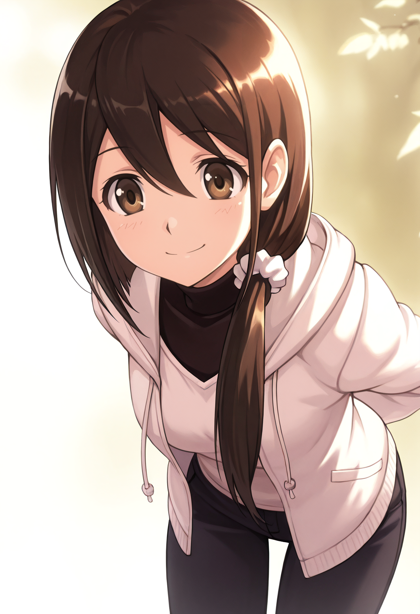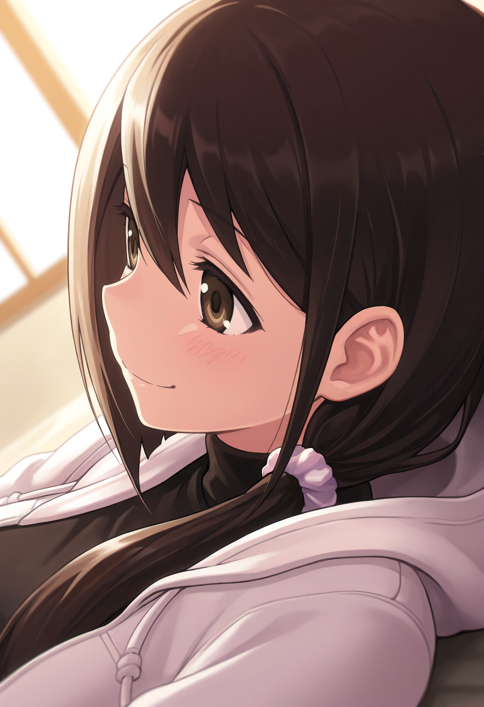 JunHoodie, hood, jacket, turtleneck, hoodie, casual, scrunchie, open clothes, coat, white jacket, shirt, hair scrunchie, hooded jacket,