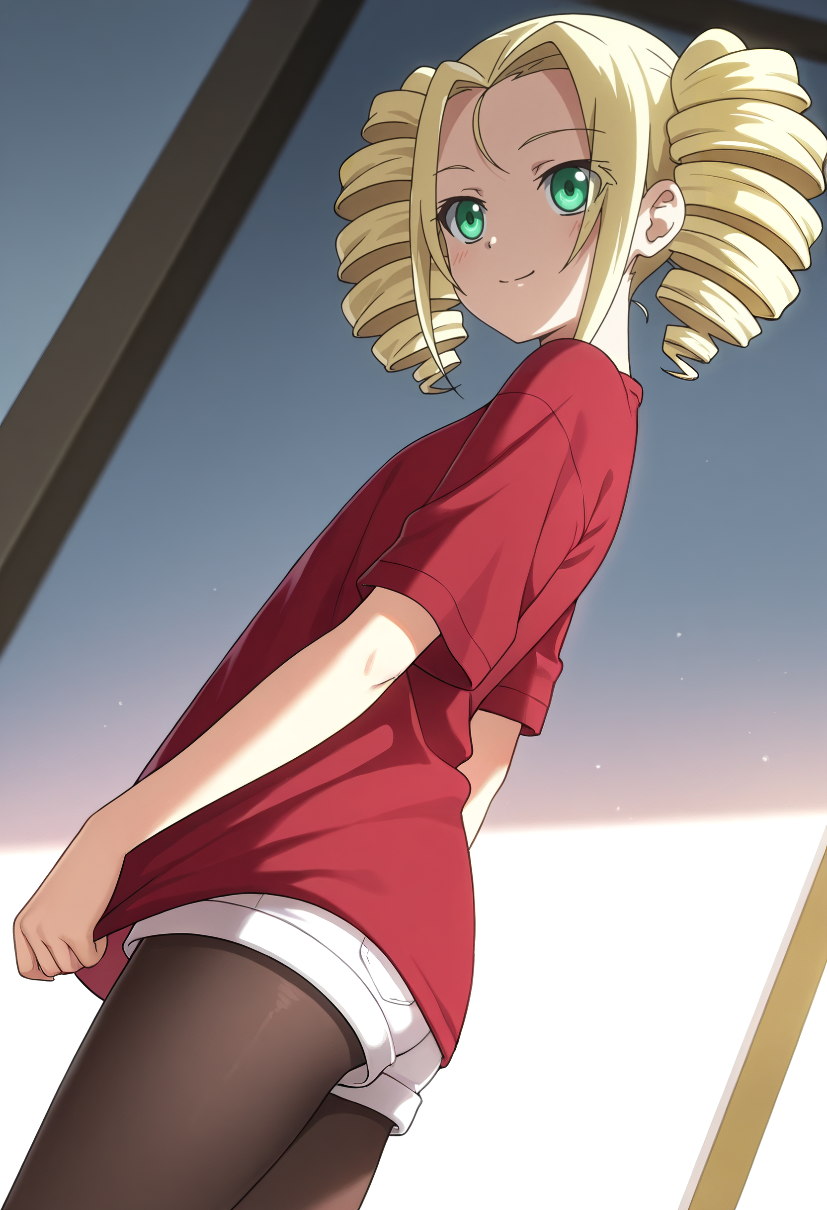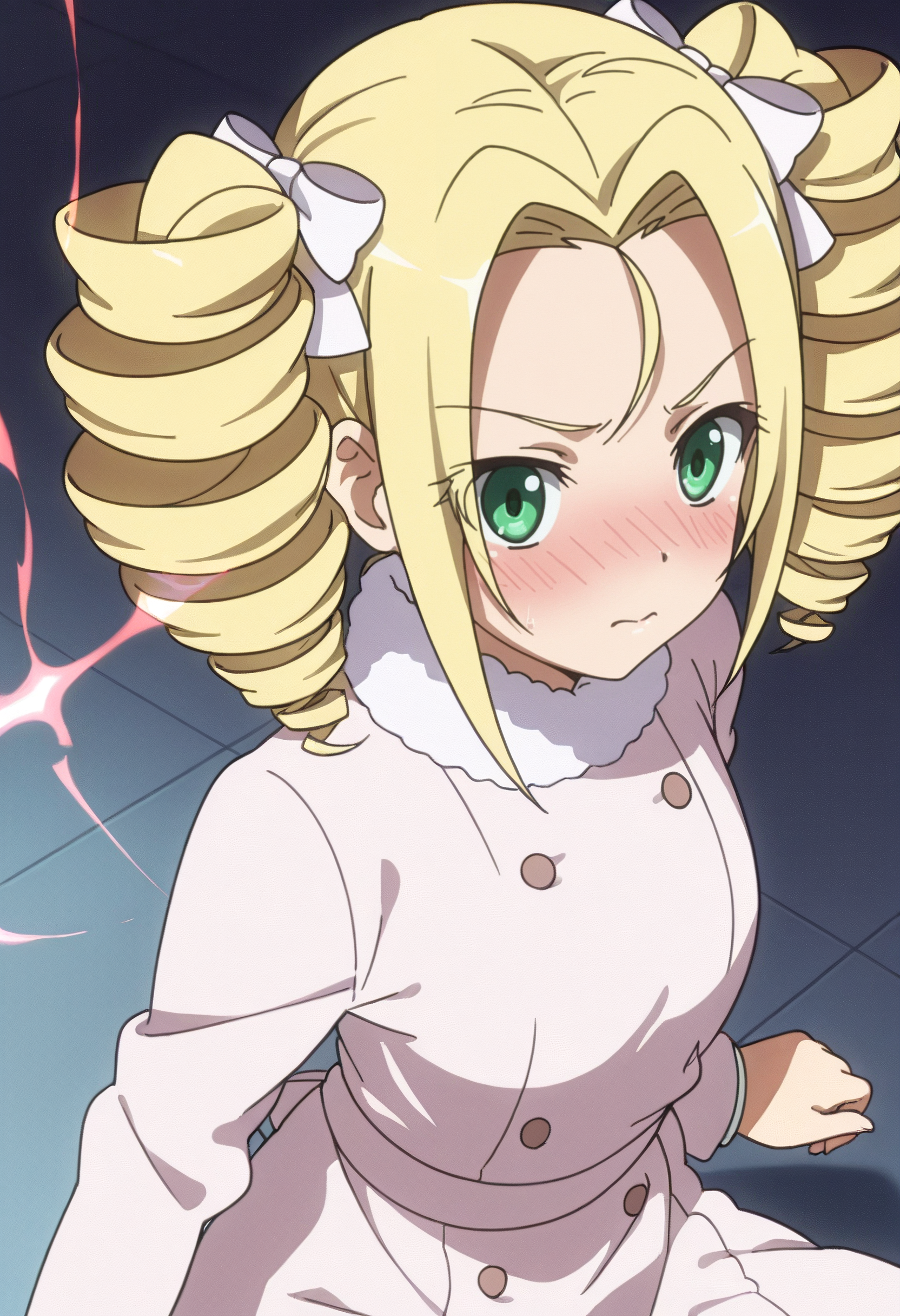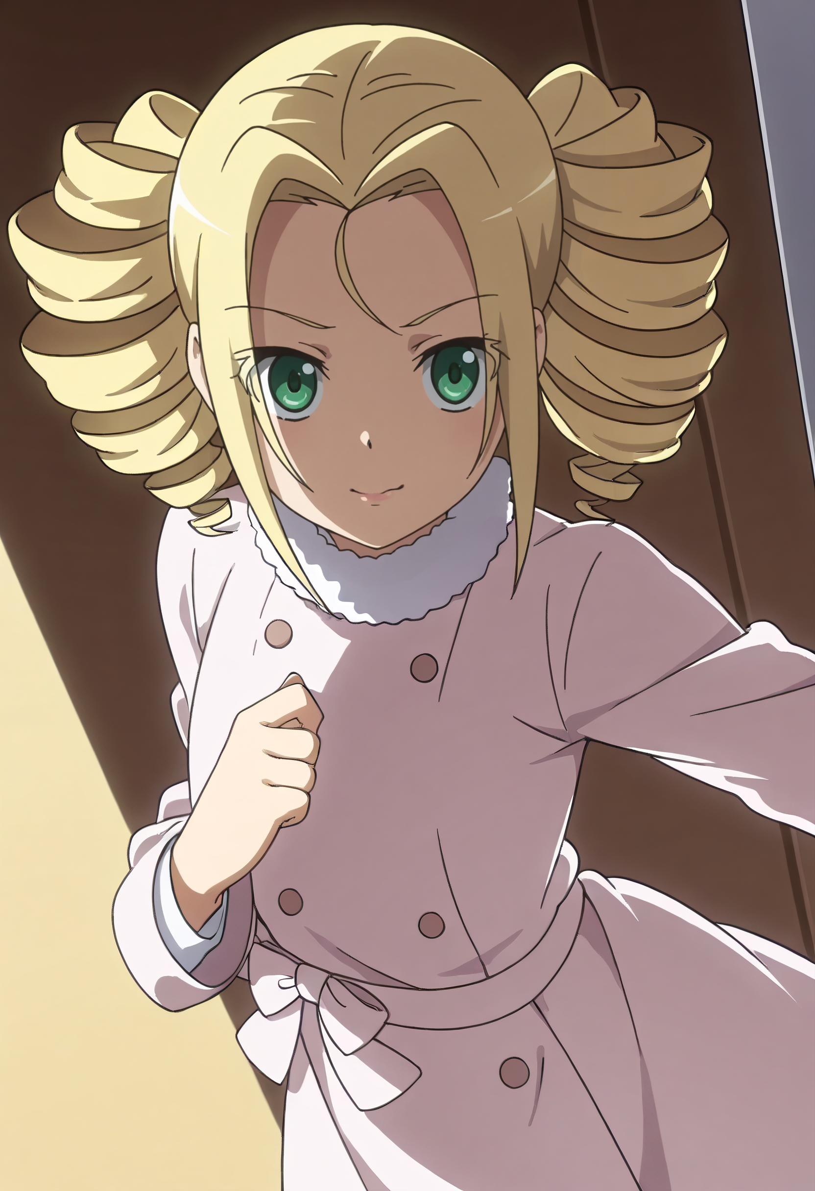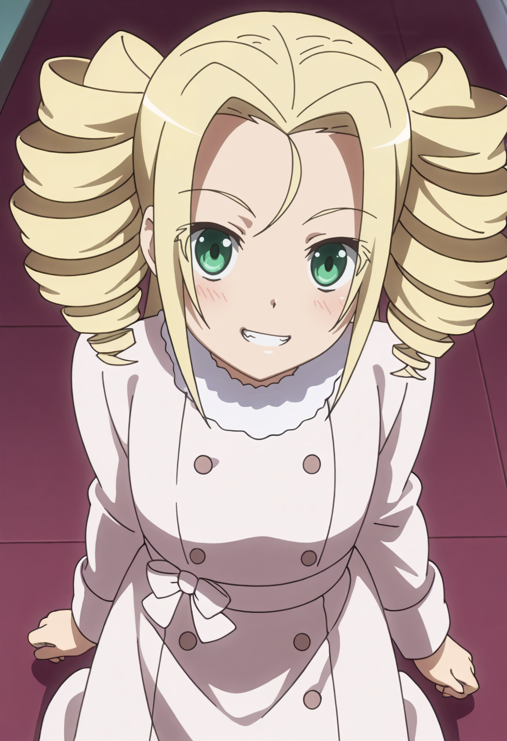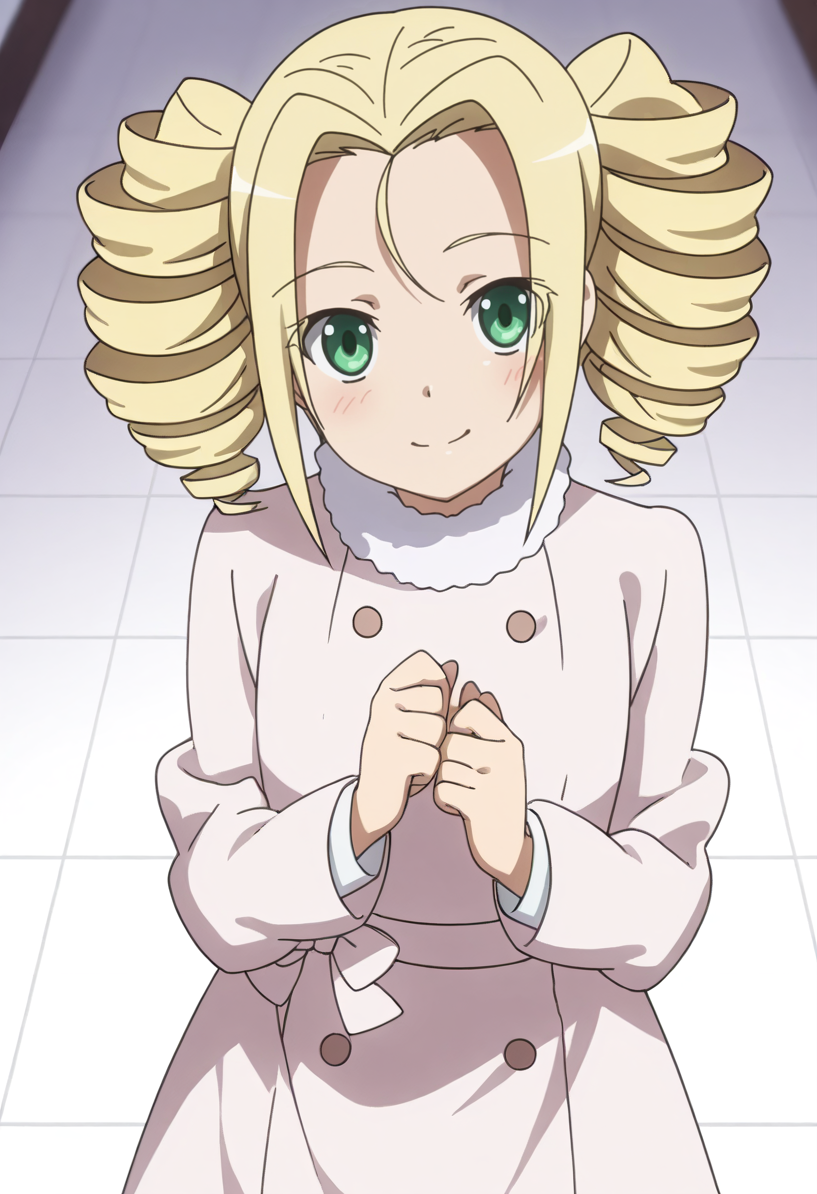 KNZLime、金髪、ドリルヘア、ツインテール、緑の目、ロングヘア、ショートヘア、あほ毛、分け目のある前髪、ツインドリル、