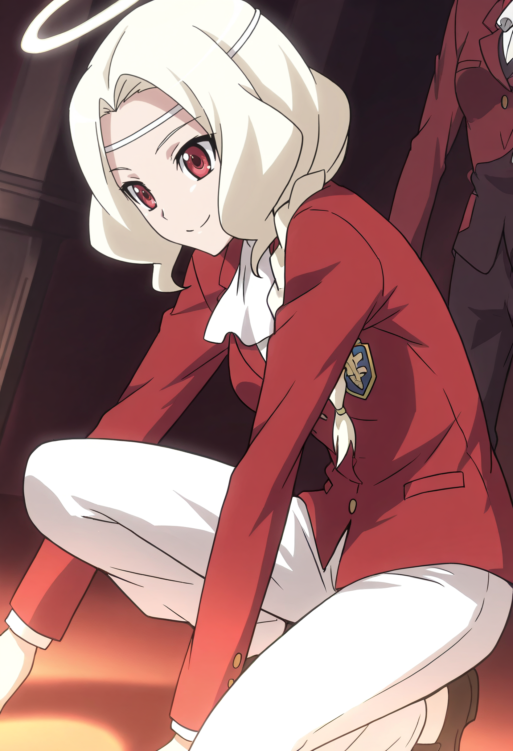 MarsShirtB、アスコット、赤いジャケット、白いアスコット、ジャケット、輪冠、フォーマルウェア、スーツ、ブレザー、長い袖、学ラン、エンブレム、