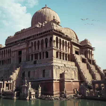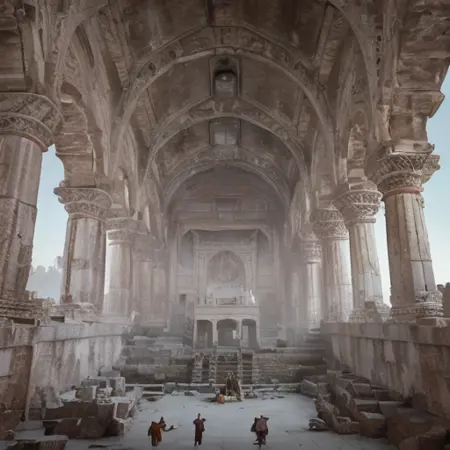 ancient-ruin, The ancient city of Ayodhya is steeped in history and legend, with a rich cultural heritage that spans thousands of years. According to Hindu mythology, Ayodhya was the birthplace of Lord Rama, a revered deity who is considered the embodiment of righteousness and virtue. The city is also renowned for its stunning architecture, including the iconic Ram Janmabhoomi temple, which is said to have been built on the spot where Lord Rama was born. Despite its ancient origins, Ayodhya has also been at the center of modern-day controversies, with disputes over ownership and control of the temple site leading to years of tension and conflict. But even amidst these challenges, Ayodhya remains a fascinating glimpse into the cultural and spiritual heritage of India, and a reminder of the enduring power of faith and tradition, high quality, hyperrealism, realistic, 8k, dslr capture, daylight