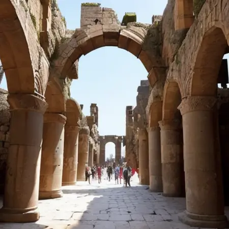 ancient-ruin,Byblos is an ancient city on the Mediterranean coast of Lebanon, with a history that dates back more than 7,000 years. It's a city that's steeped in mythology and legend, and it's renowned for its rich cultural heritage and stunning natural beauty. The city was an important center of trade and commerce in ancient times, and it's considered one of the oldest continuously inhabited cities in the world. Today, Byblos is a fascinating glimpse into the ancient world, with its towering ruins, intricate mosaics, and impressive temples. Despite the passage of time, Byblos retains its allure, drawing visitors from around the world who come to marvel at its architectural marvels and artistic treasures. As you explore the ancient city, you can almost feel the weight of history, and you can imagine the vibrant culture and intellectual ferment that once thrived here. It's a testament to the enduring legacy of ancient Lebanon, and a call to cherish the marvels of our shared history,high quality, hyperrealism, realistic, 8k, dslr capture, daylight