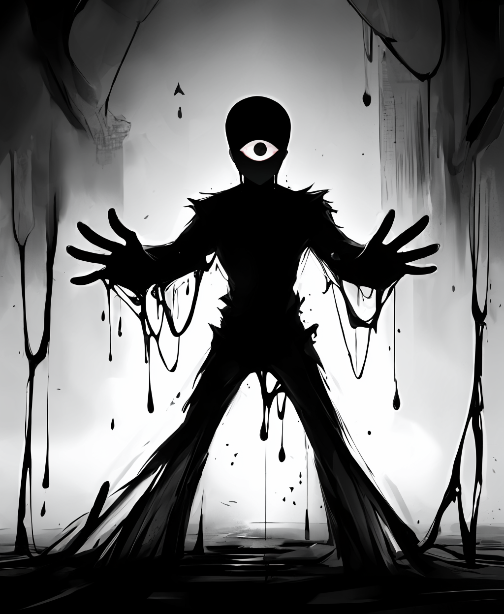 List of useful prompts : horror theme, monster, no humans, black eyes, silhouette, dripping, no mouth, one-eyed