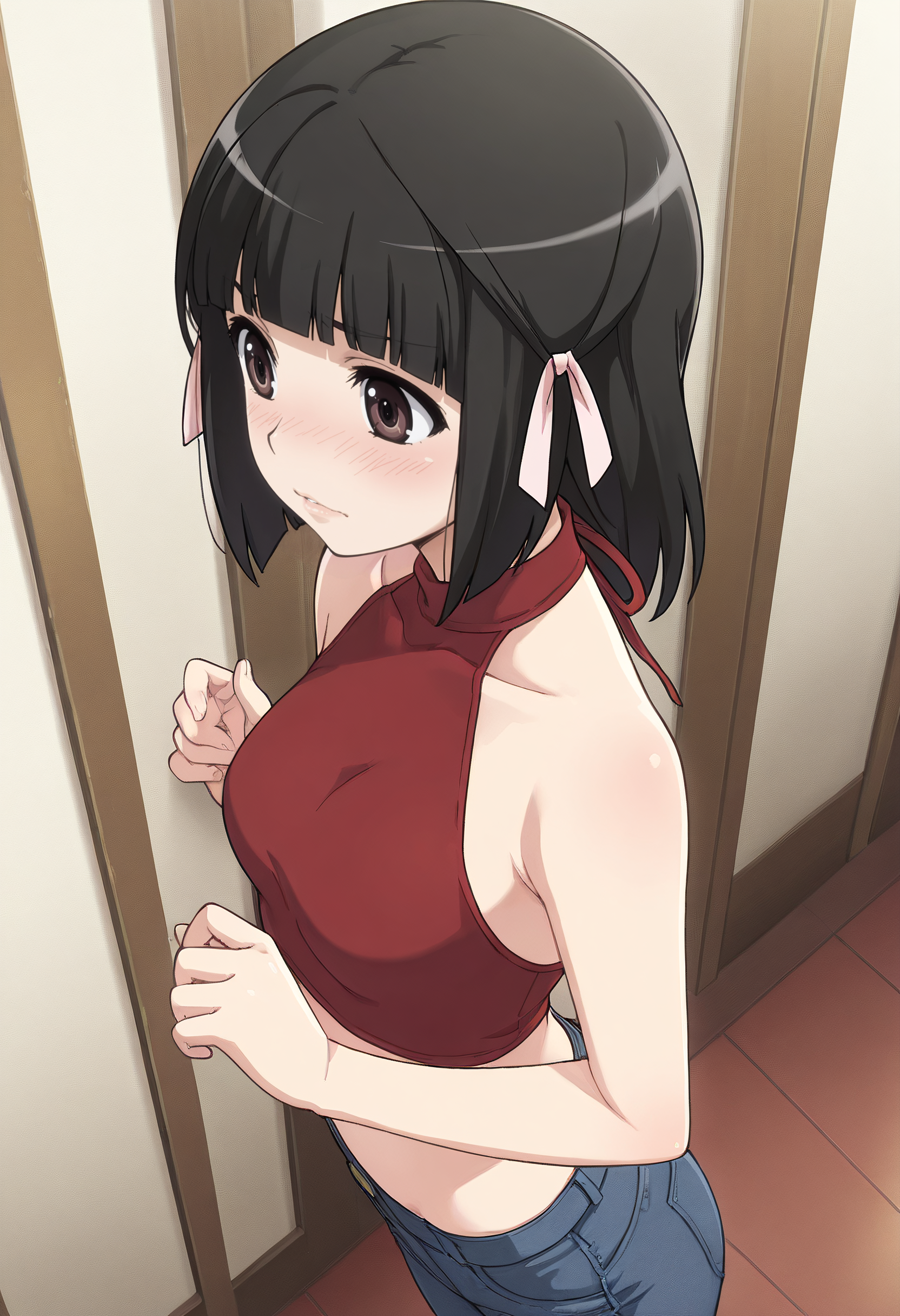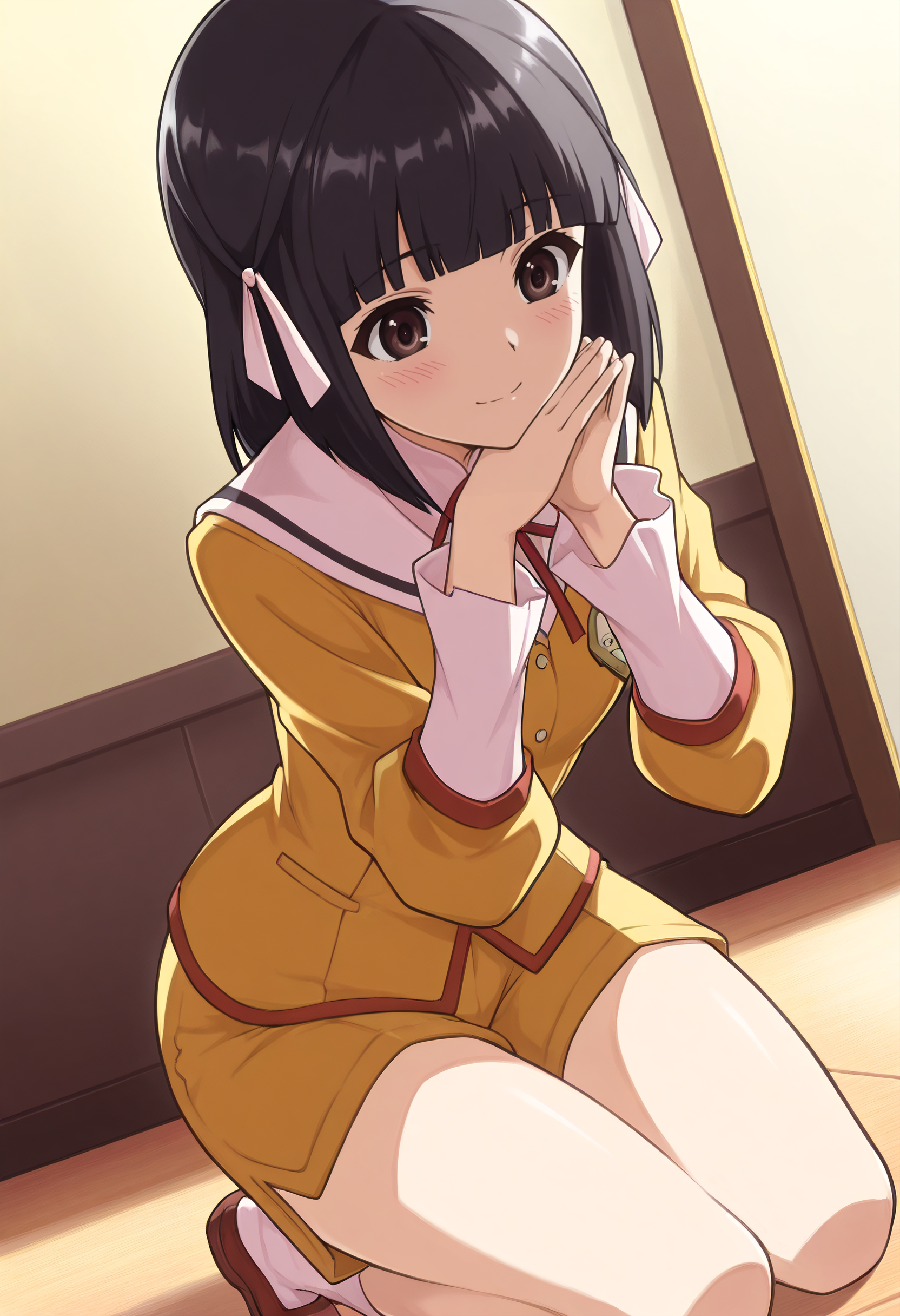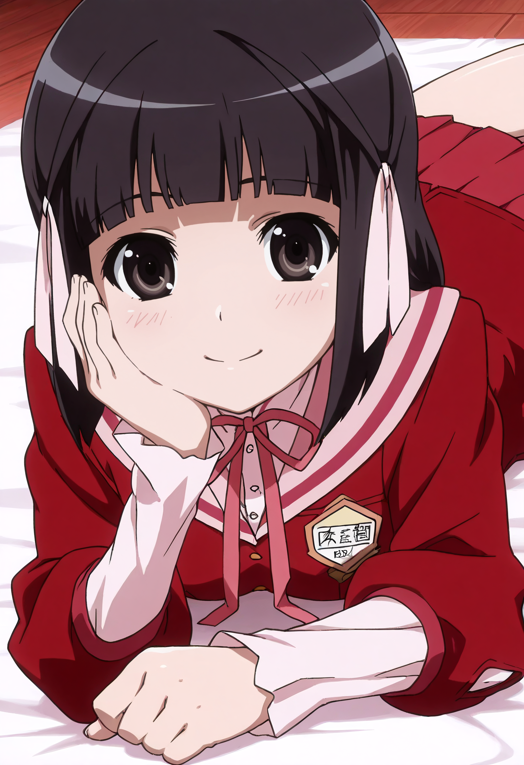 ShioriSchool、リボン、学校制服、髪飾り、セーラー collar、長袖、リボン、白いリボン、ジャケット、セーラー服、赤いリボン、ピンクのリボン、スカート、シャツ、赤いジャケット、プリーツスカート、赤いスカート、