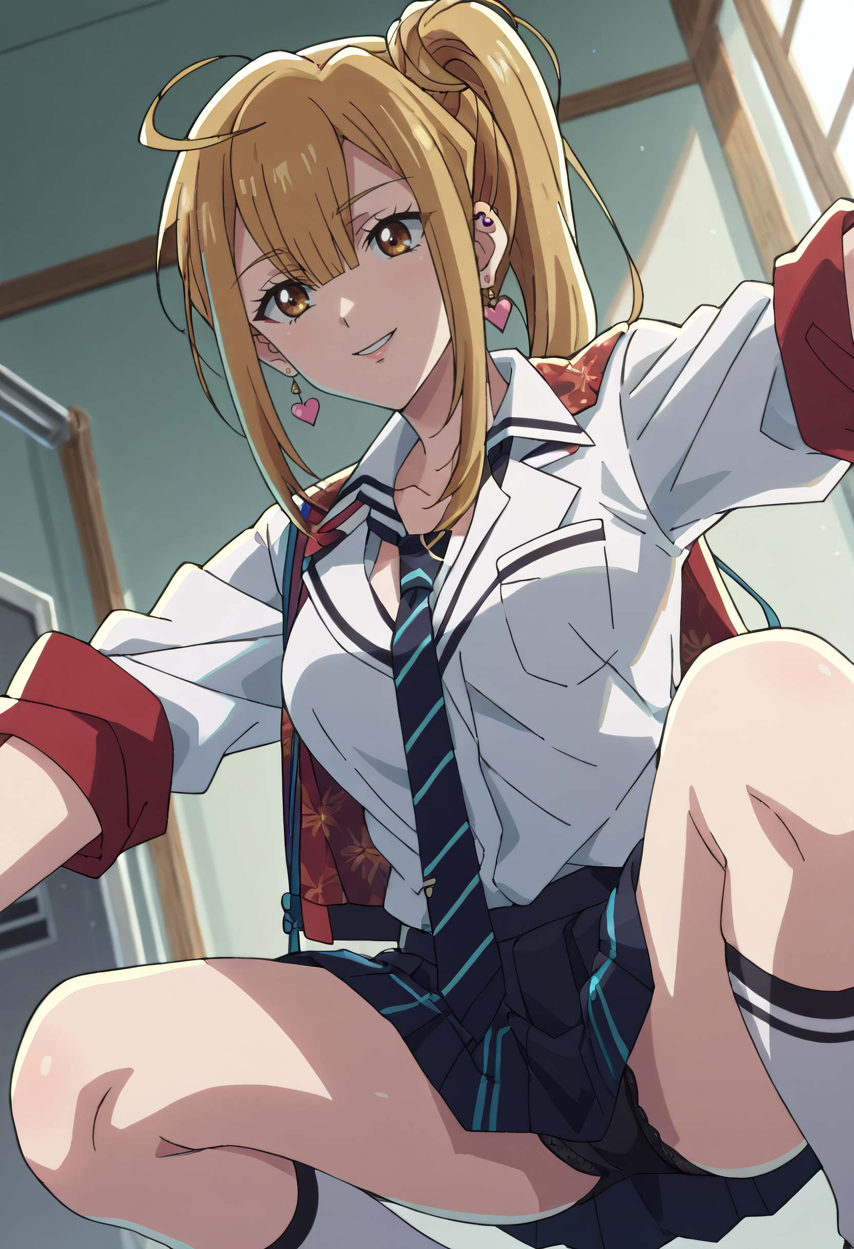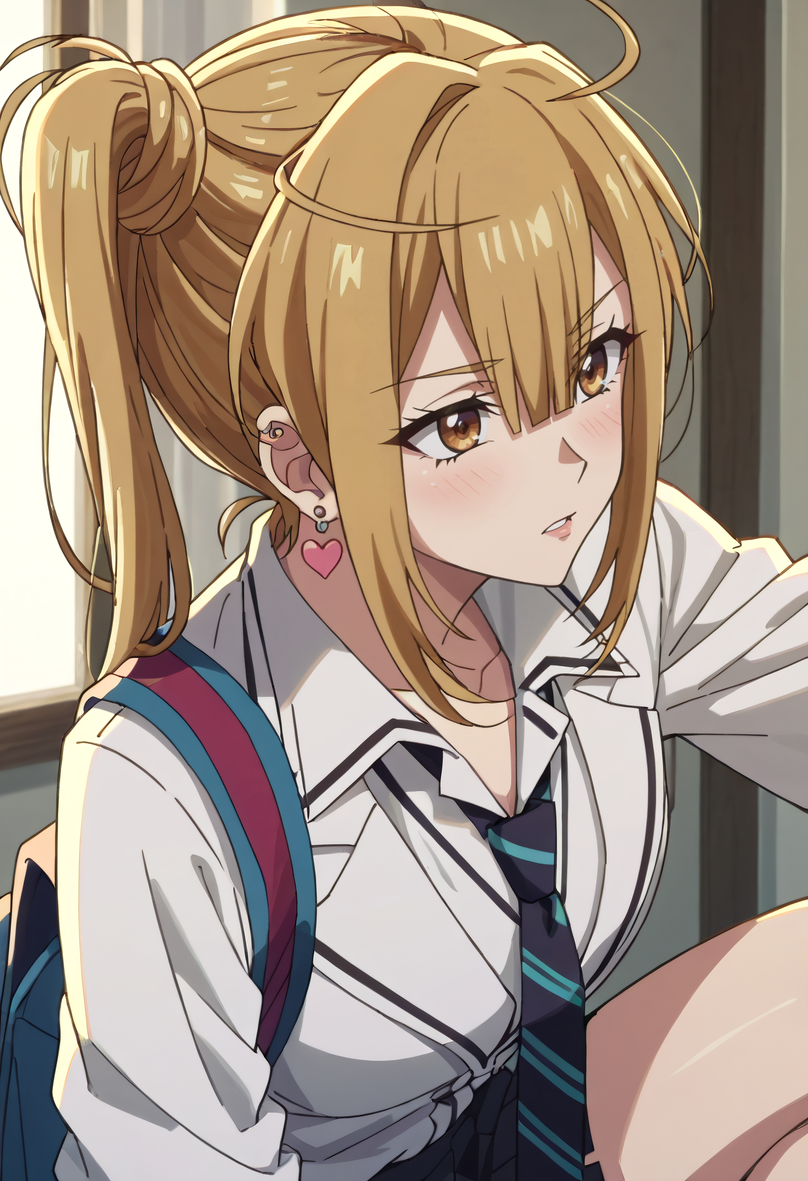 ItsukiSchool, 셔츠, 칼라 셔츠, 귀걸이, 보석, 흰 셔츠, 재킷, 피어싱, 하트 귀걸이, 귀 피어싱, 학교 유니폼, 넥타이,