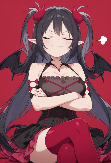 Luceria, 데몬 소녀, 양측 상단 올림, 검은 머리, 검은 눈,