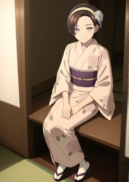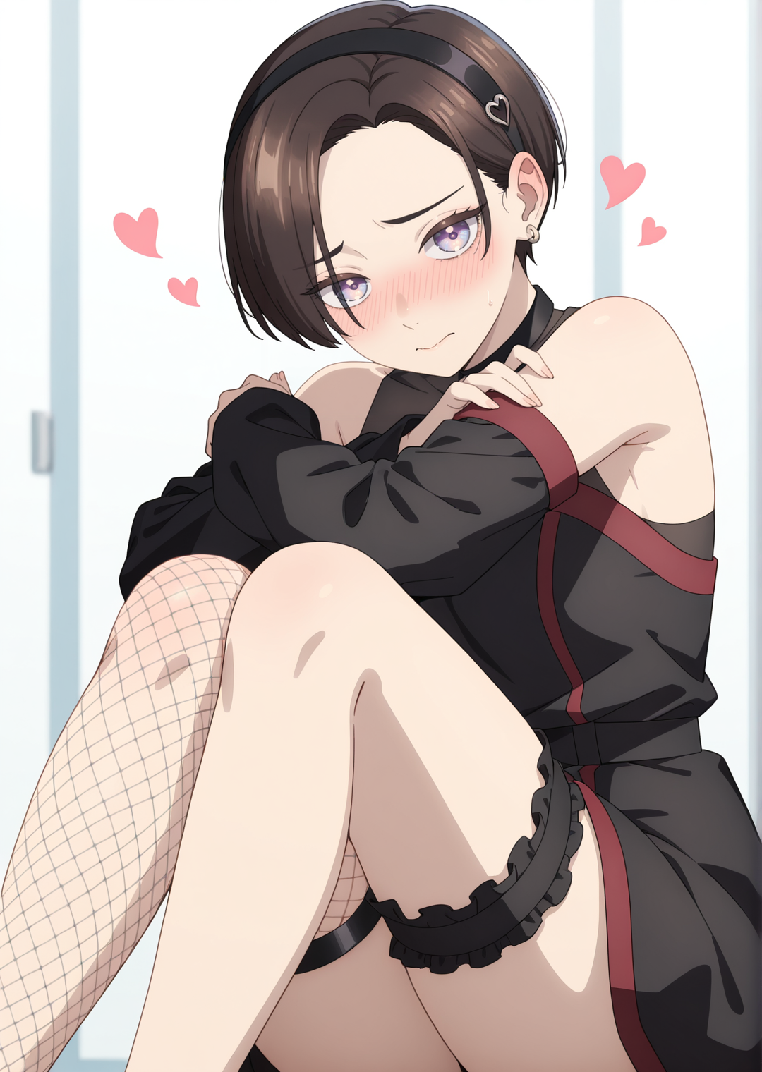YoiTakiguchi, 1girl, solo, purple eyes, short hair, brown hair,