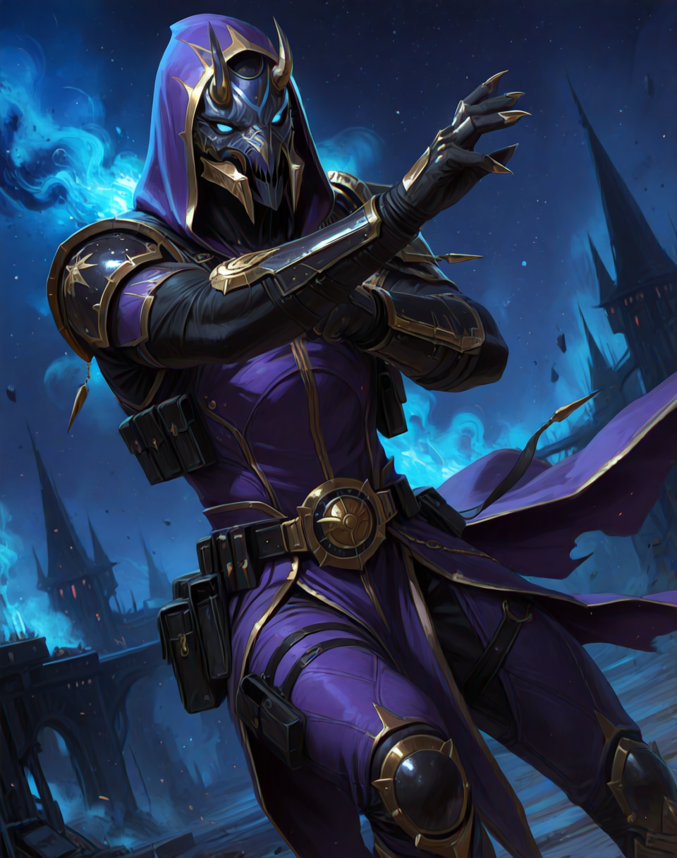 このLoRA用のプロンプトは(CulOfTzee、筋肉質、Tzeentch、ローブ、装甲、マスク)です。