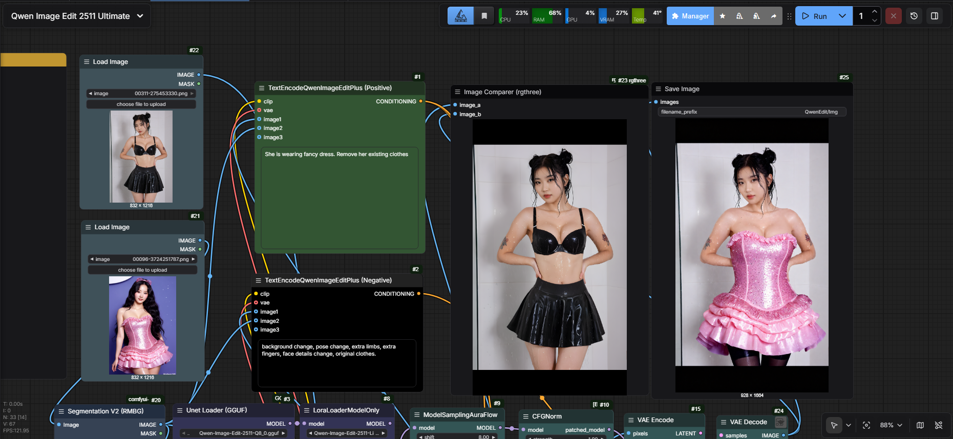 Qwen Image Edit 2511 — 2画像編集ワークフロー(ベース + リファレンス)