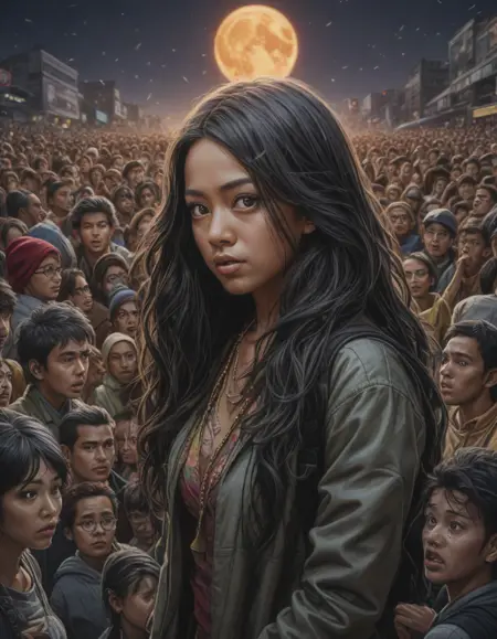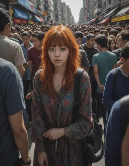 사람들의 군중을 소환하세요. 트리거 없이 0-1 강도의 예시들.