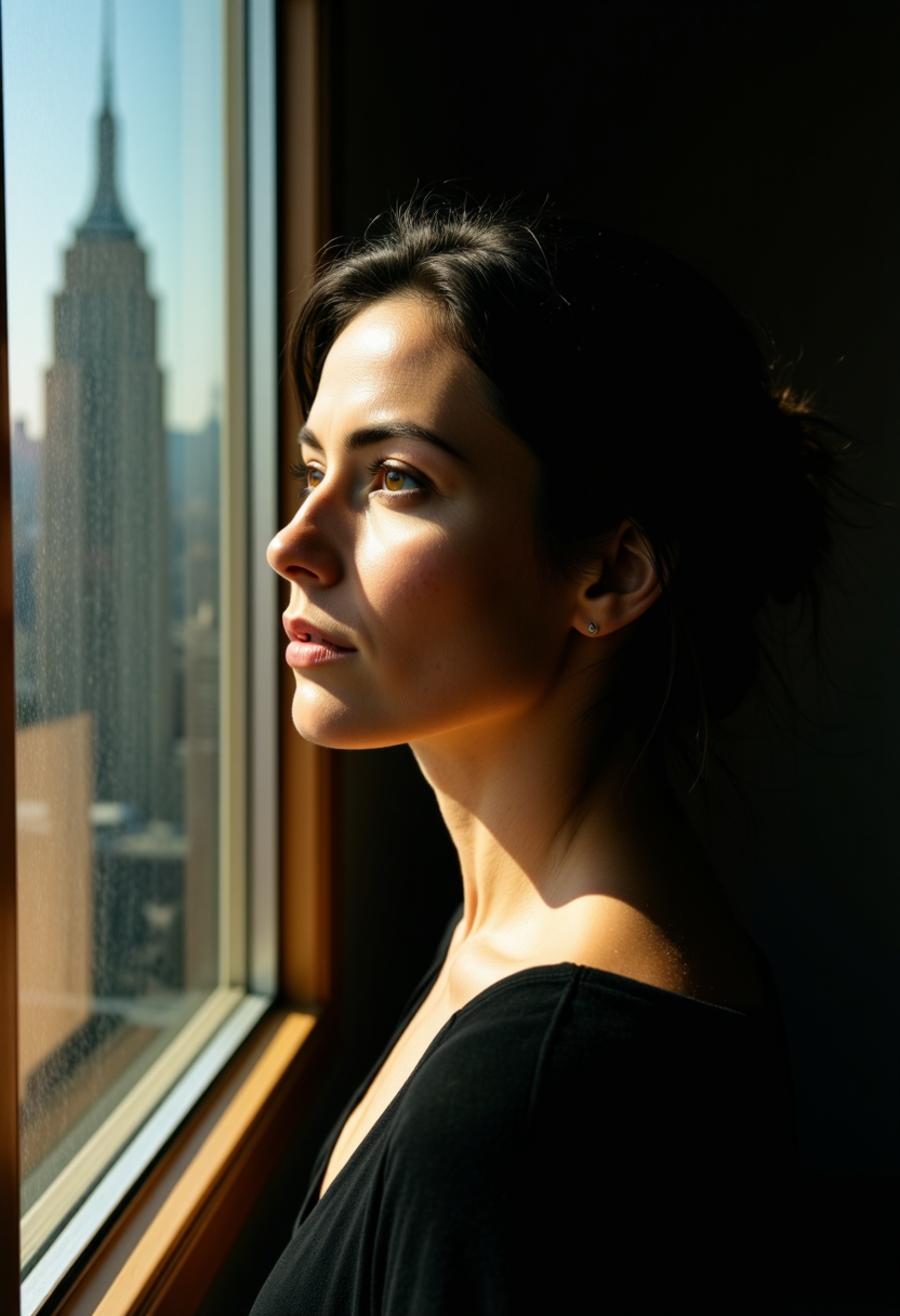 絵画的リアリズム、映画的照明、柔らかい影、大気的なイラスト、美術的ポートレートスタイル、自然な肌の質感、穏やかなコントラスト、表現的な光、ロマンティックなリアリズム、絵画的筆触テクスチャ、映画的ムード
