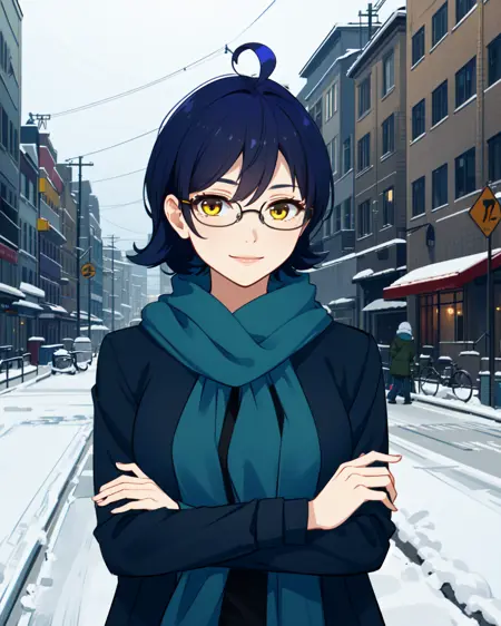 외모: 노란 눈, 파란 머리, 안경, 아호게