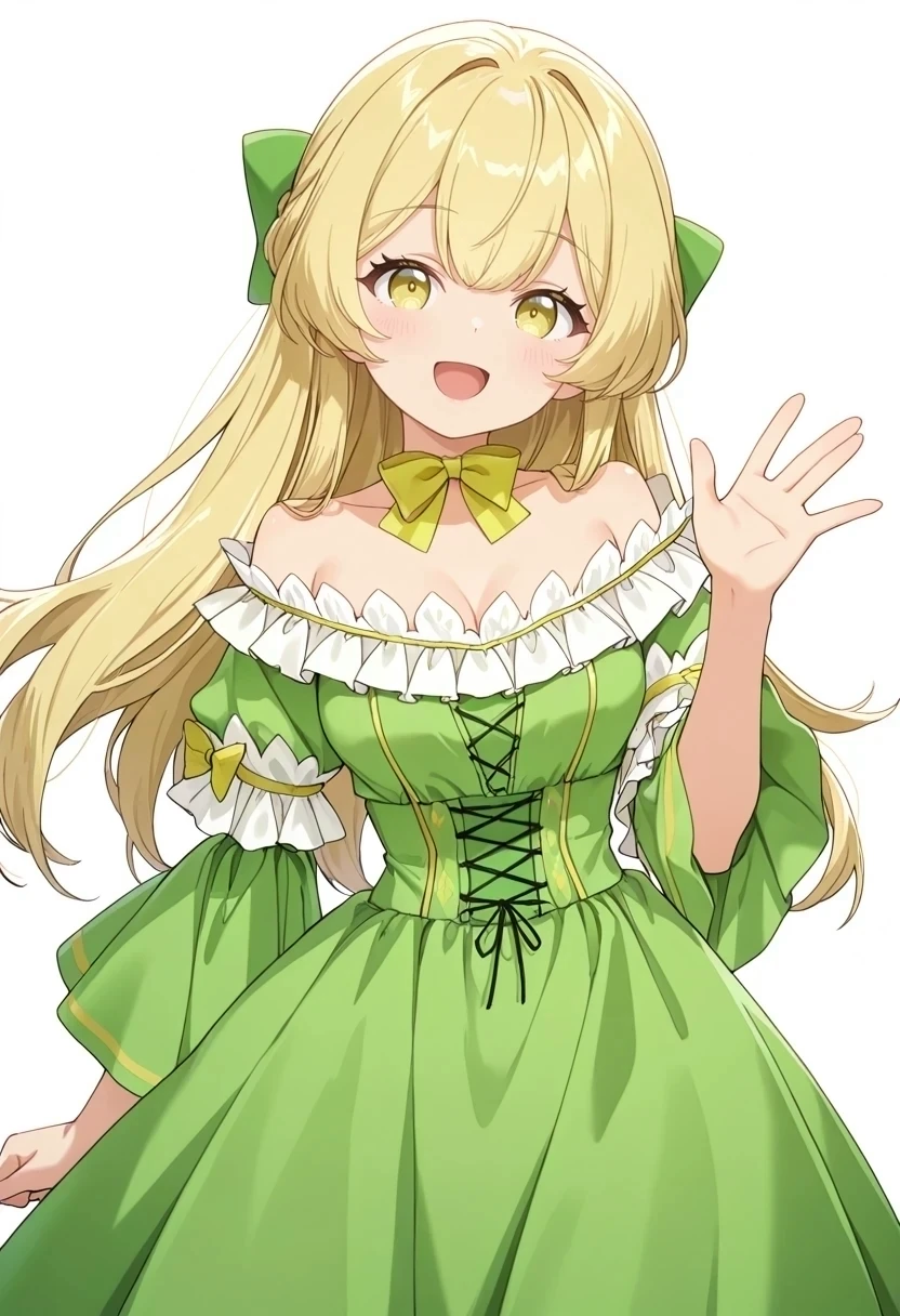 보우 초커,어깨 드리프트 드레스,녹색 드레스,프릴,