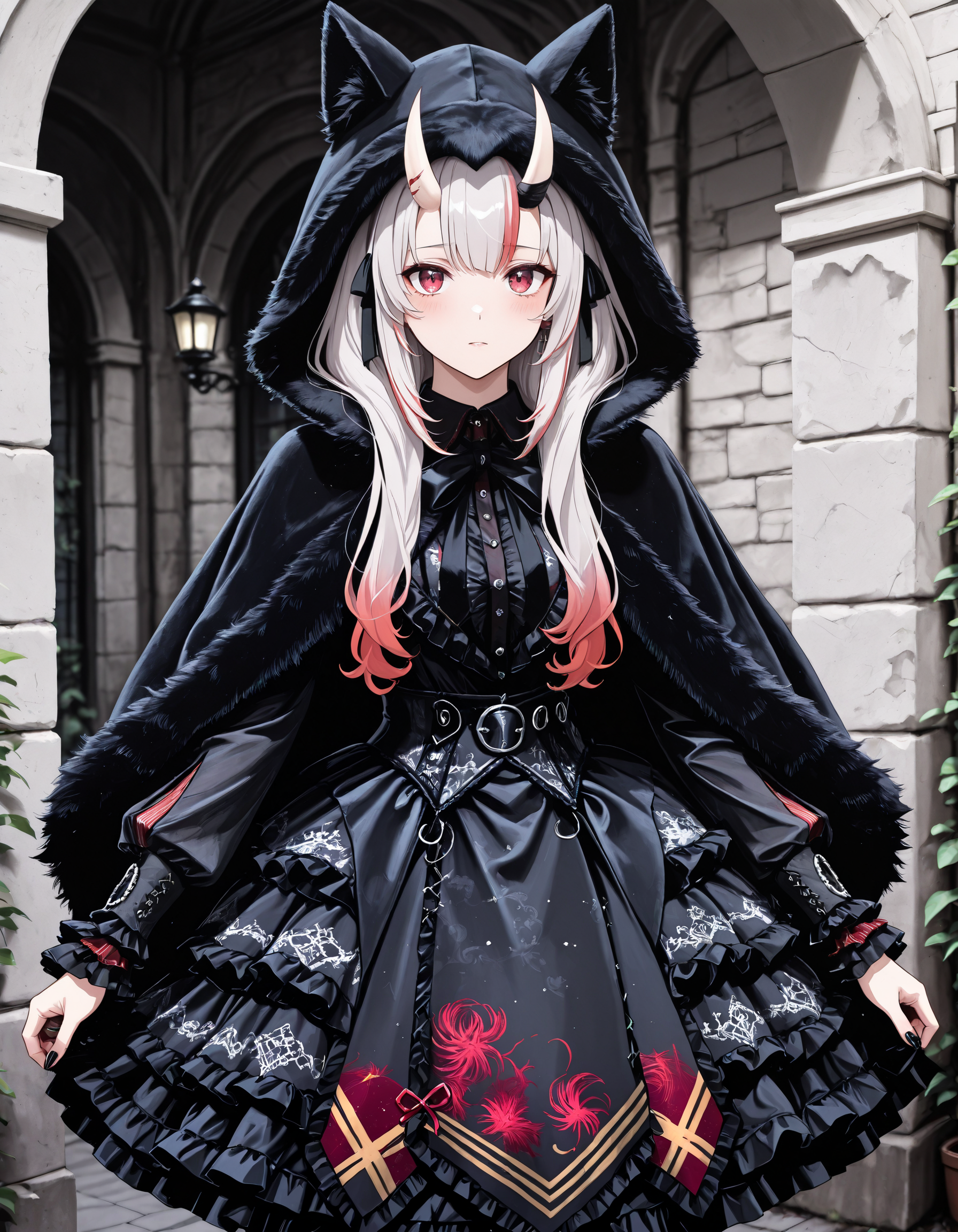 Gothic Frilled Dress & Fur Cape