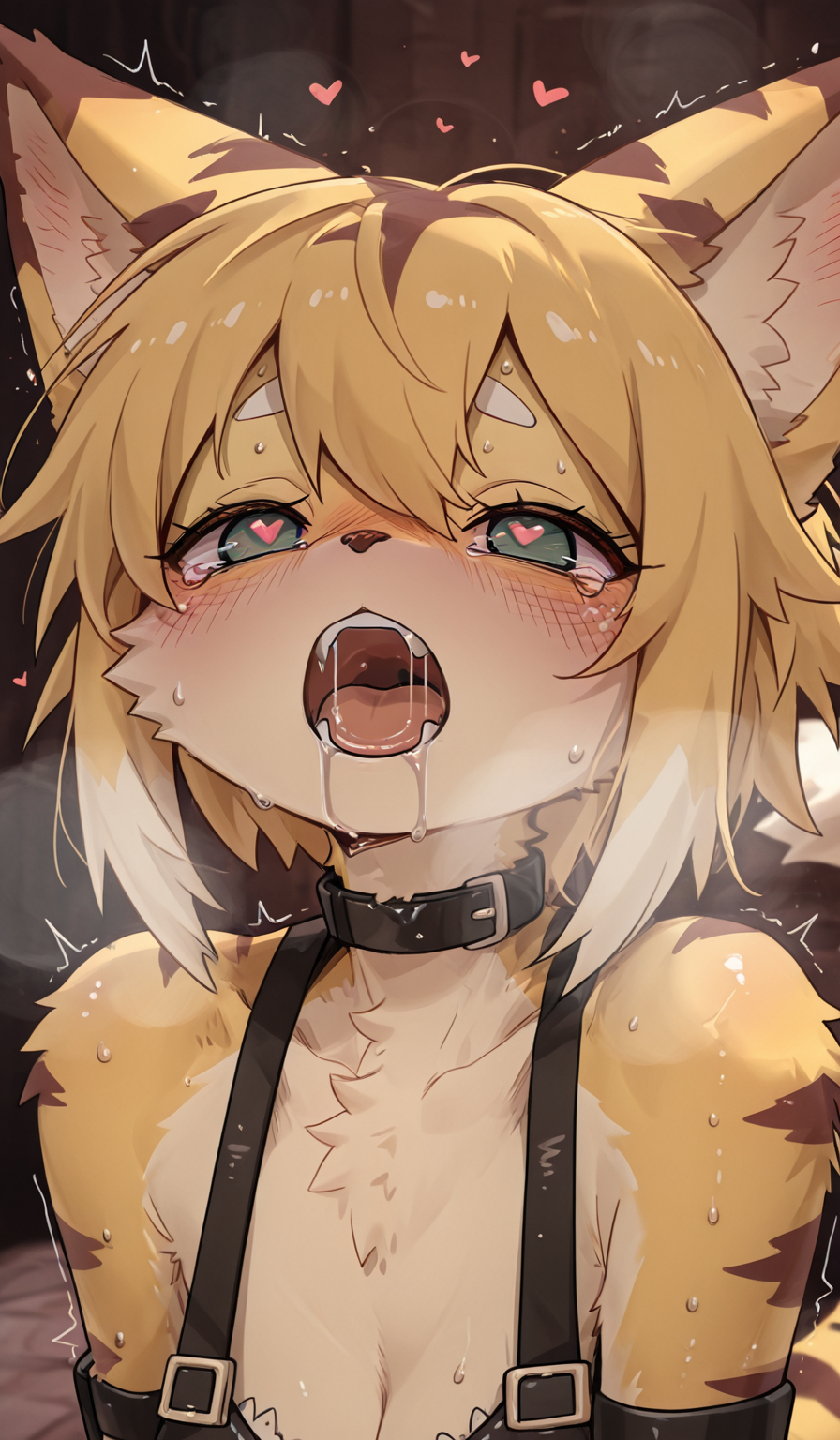 MiWF,furry,tail,animal ears,blonde hair,tiger ears,fang,green eyes