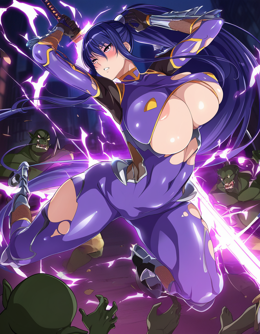 忍者装束: 连体衣,忍者服,臂甲,紧身,闪亮衣物,露下乳