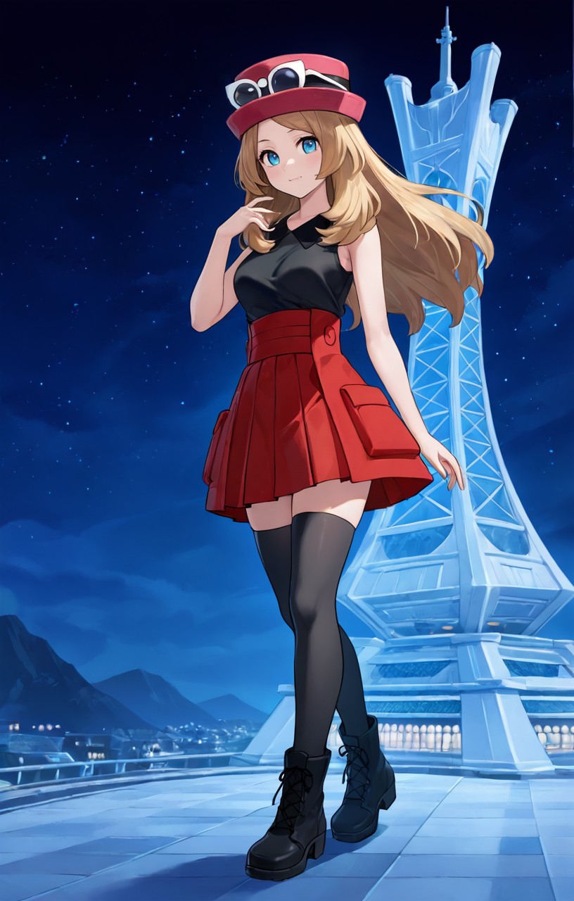 lumiose city, mountain, building, prism tower, sky, scenery,