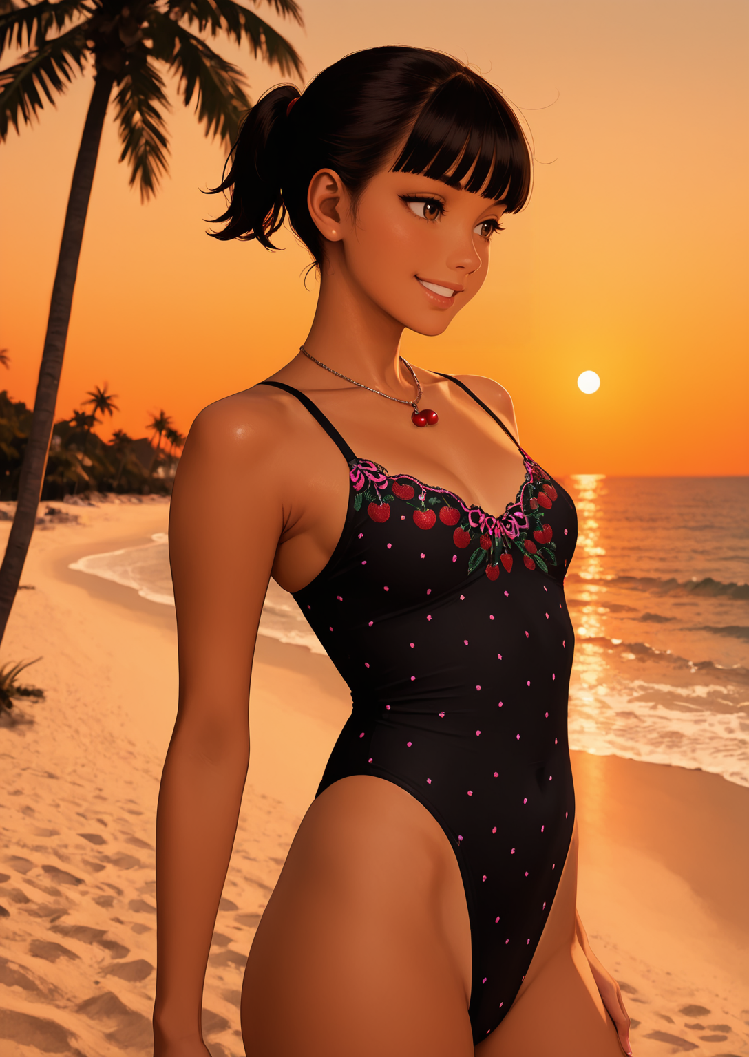このバージョンは、サクランボパターンにさらに詳細を加えるように学習されています。その代償として、「photo, realistic」をネガティブプロンプトに使用しても、ややリアルな画像が出力される傾向があります。このバージョンは、ボクサーパンツ、コルセット、レオタードなどのランジェリーの複数のアイテムとより良く組み合わせられます。