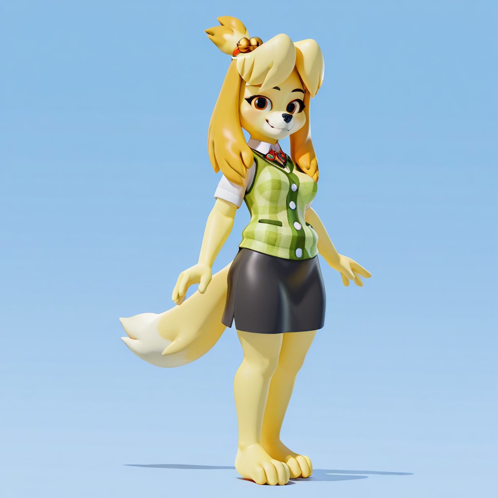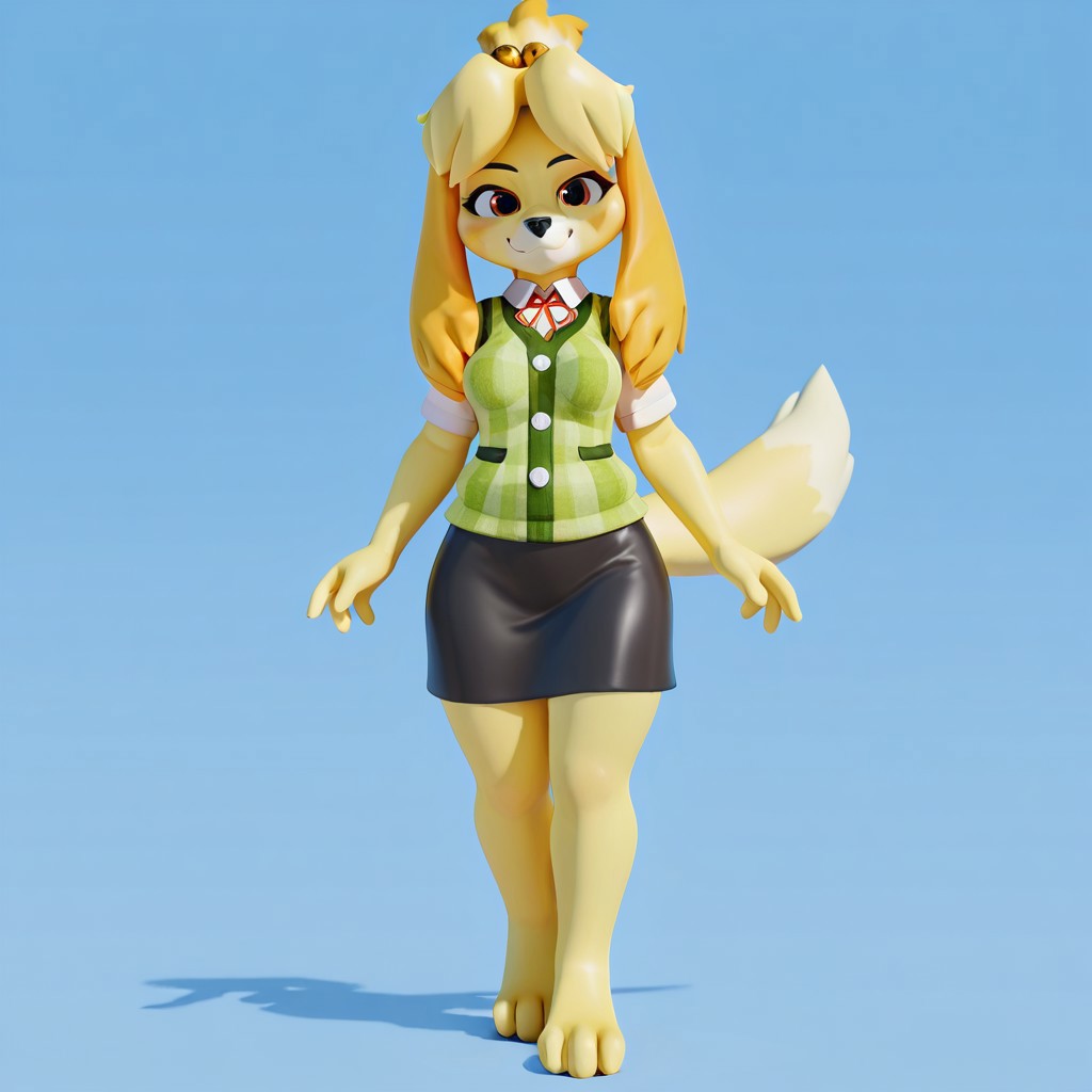 Highwizardが作成した3Dモデルを基にした、『どうぶつの森』のいすず(イザベル)のキャラクターモデル。