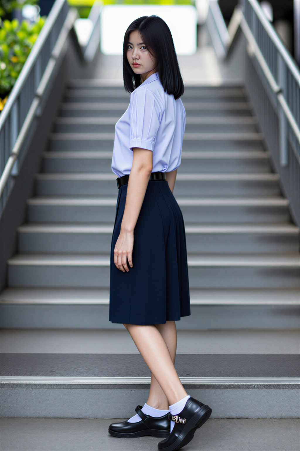 ttai_tgs@v1, ThaiTGS outfit, ThaiTGS shoes, glossy black shoes with metal hook straps, white socks, ankle socks.