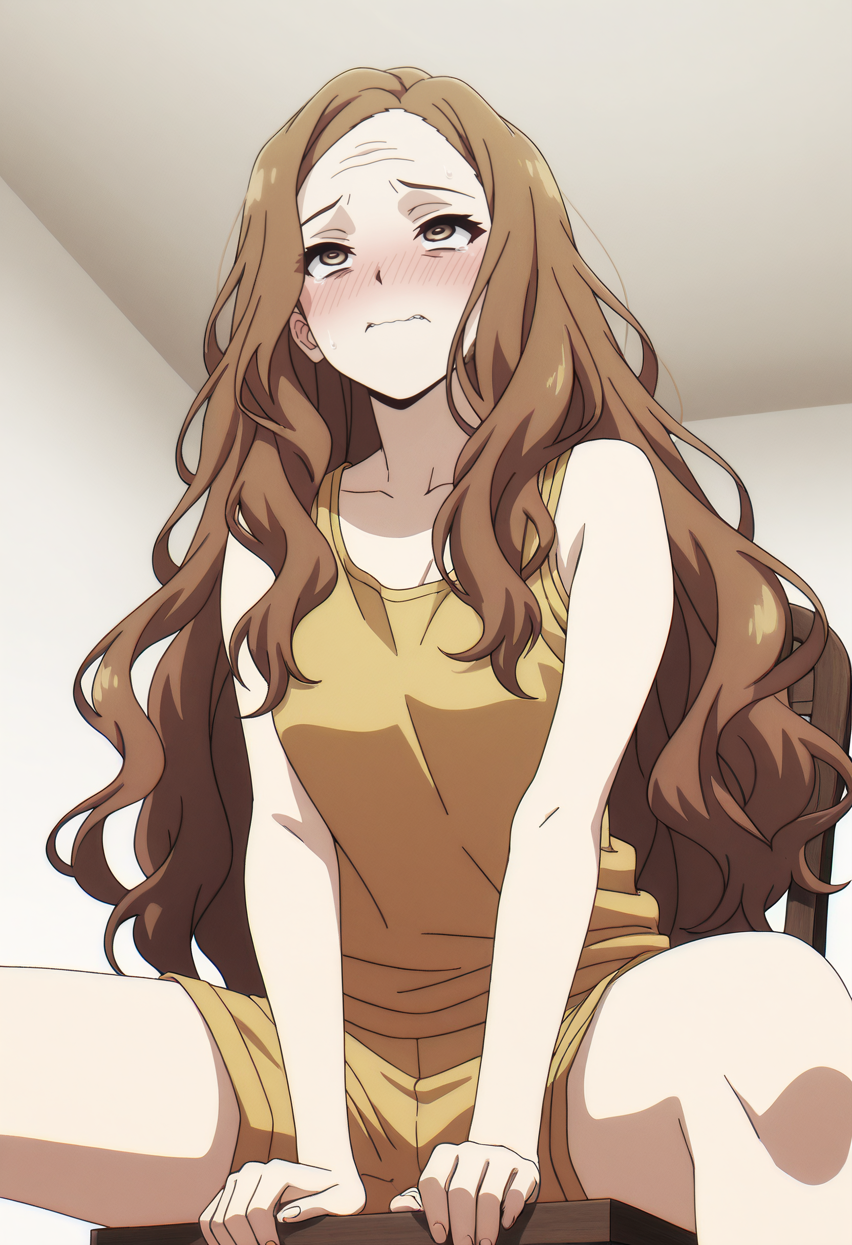 YFoDarya、長い髪、茶色の髪、ウェーブヘア、茶色の目、非常に長い髪、額、分け目のある前髪