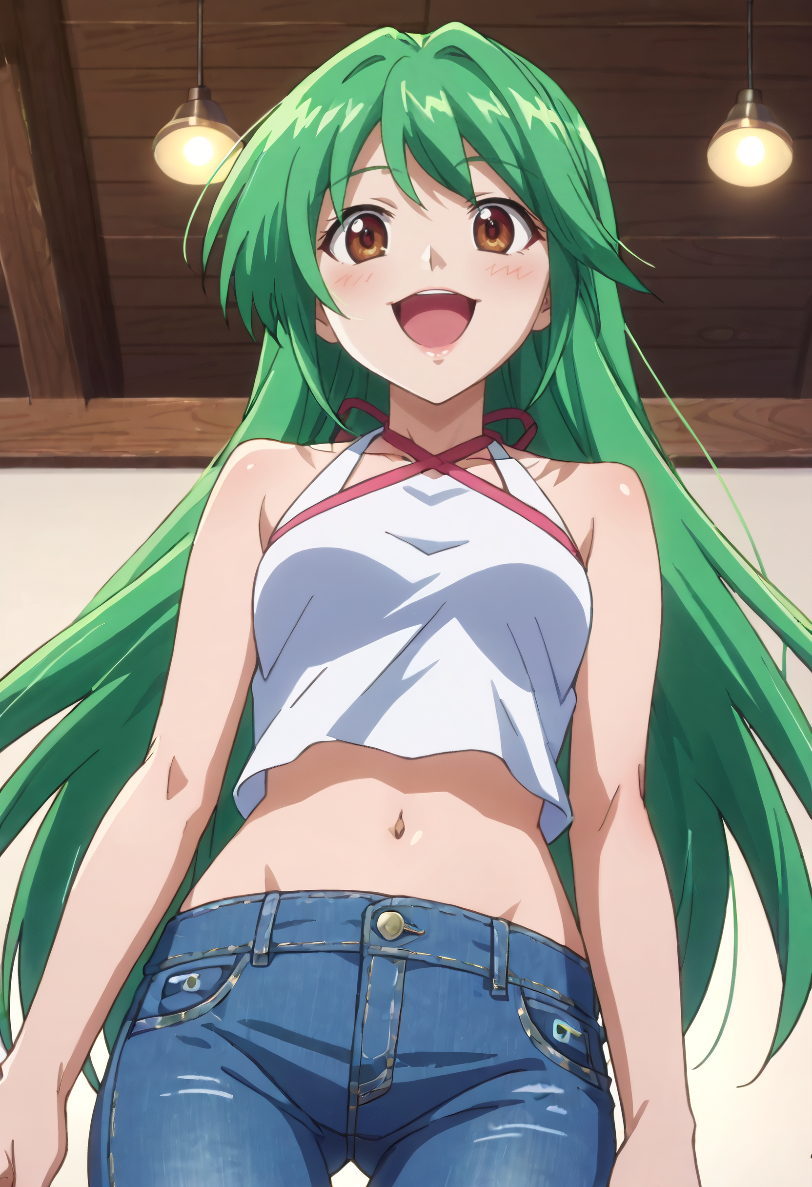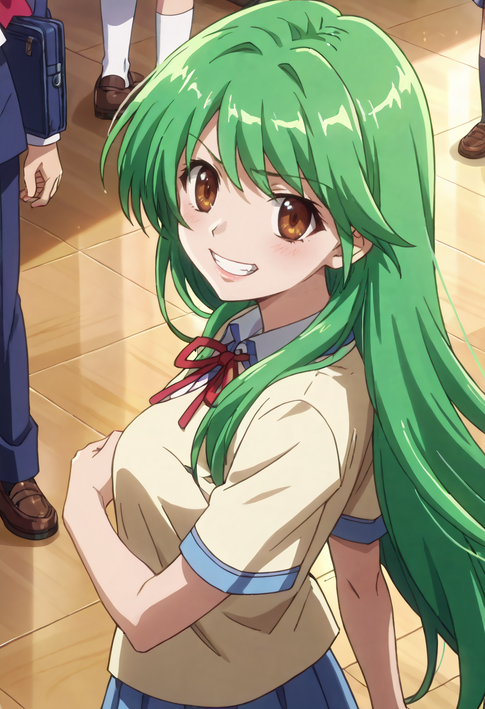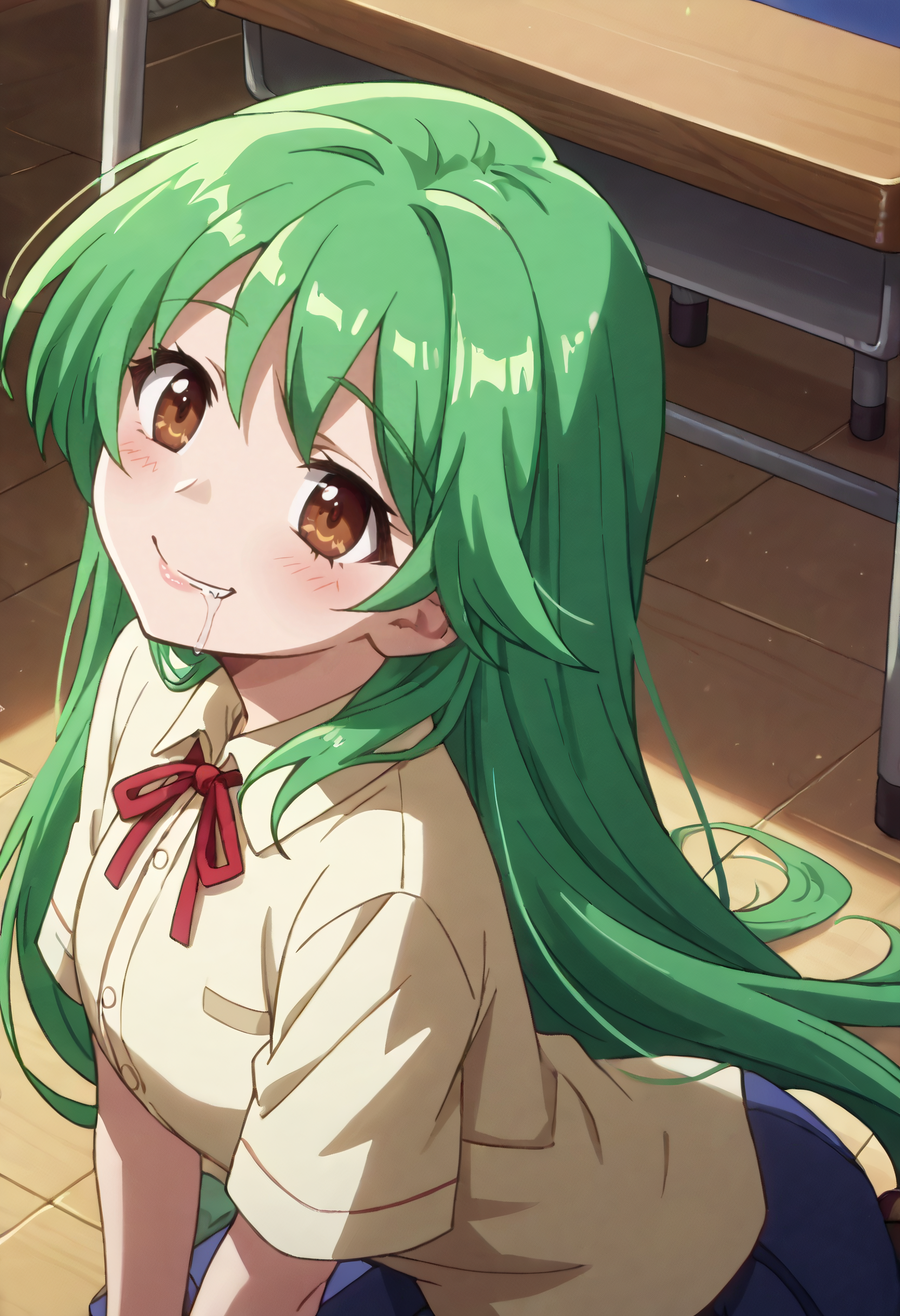 KNZYuu,绿发,长发,棕眼,