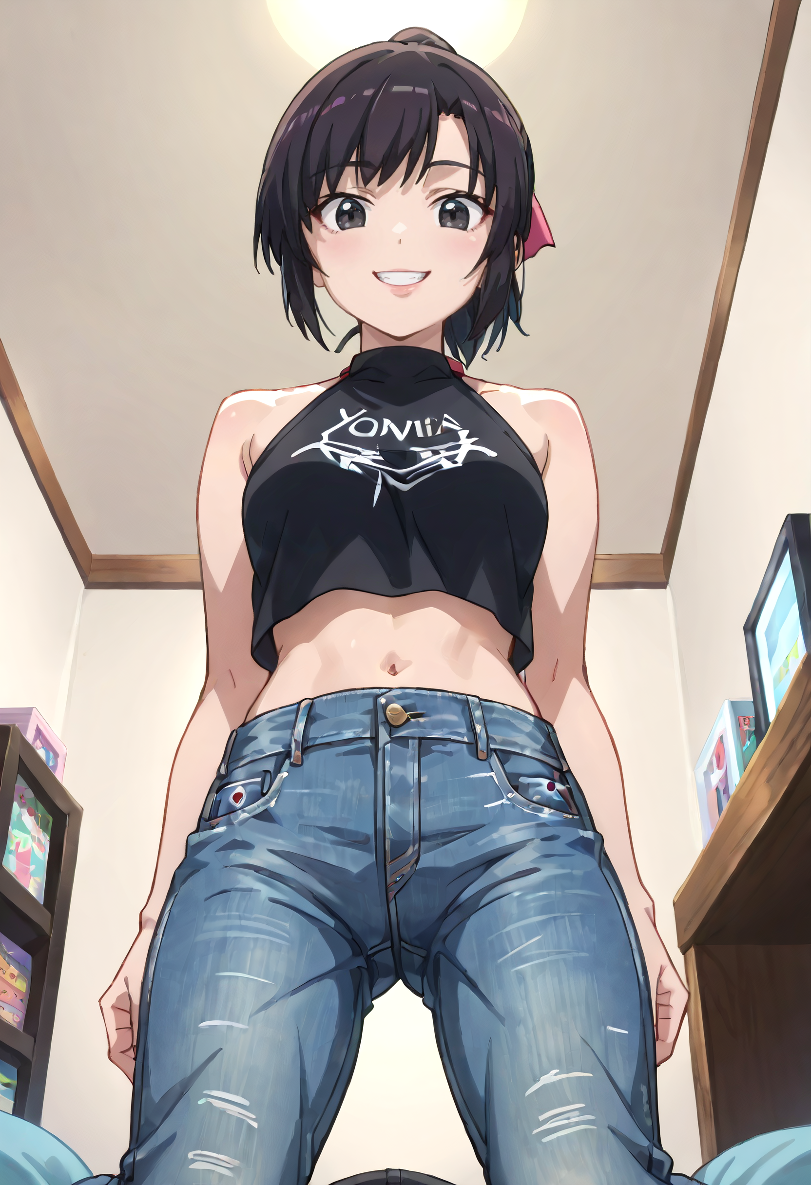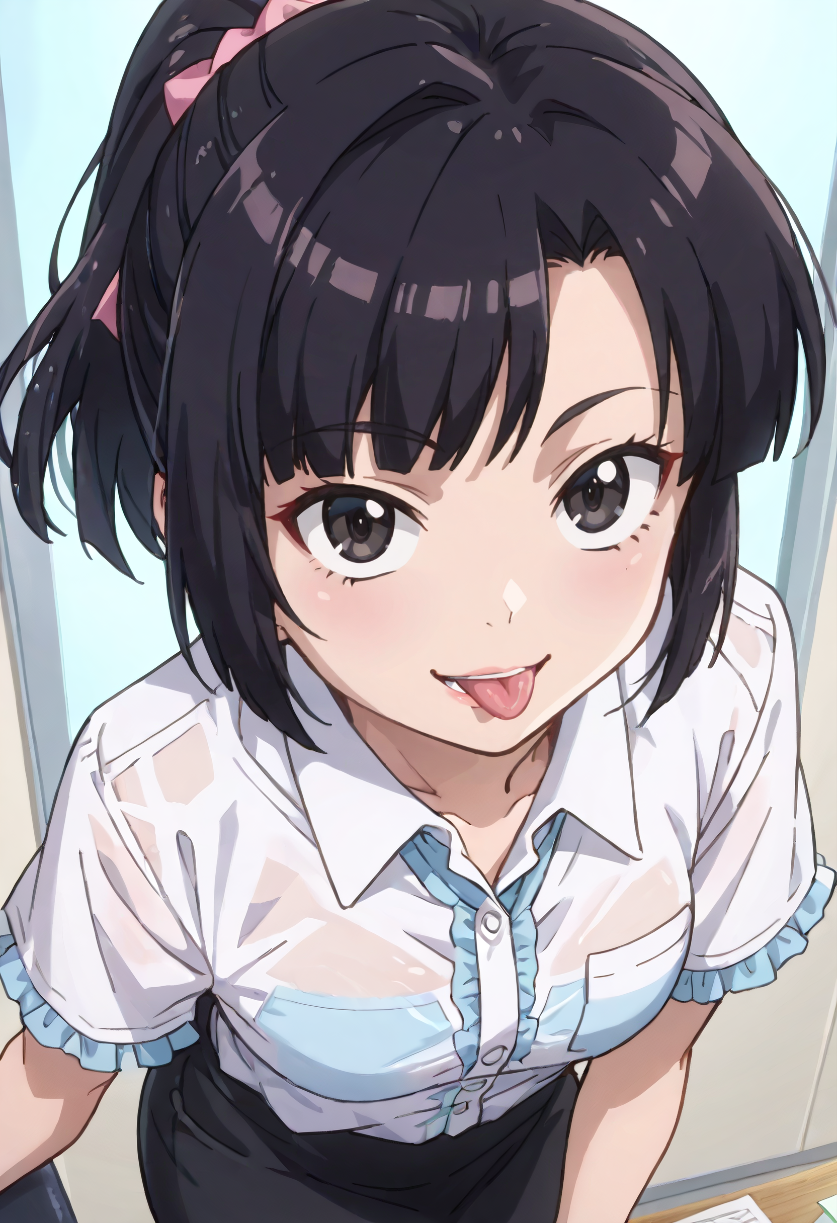 KNZSumire、短い髪、黒髪、黒目、ポニーテール、