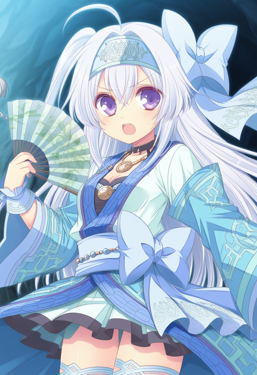 nonnoXOD, 흰 머리, 긴 머리, 짧은 측면 파니테일, 머리카락 끝, 아호게, 보라색 눈, 중간 크기의 가슴