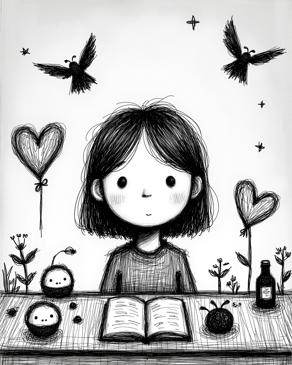 ✅ 일반적으로 이 전체 문장을 사용하세요: scratch1nk, a black and white illustration,