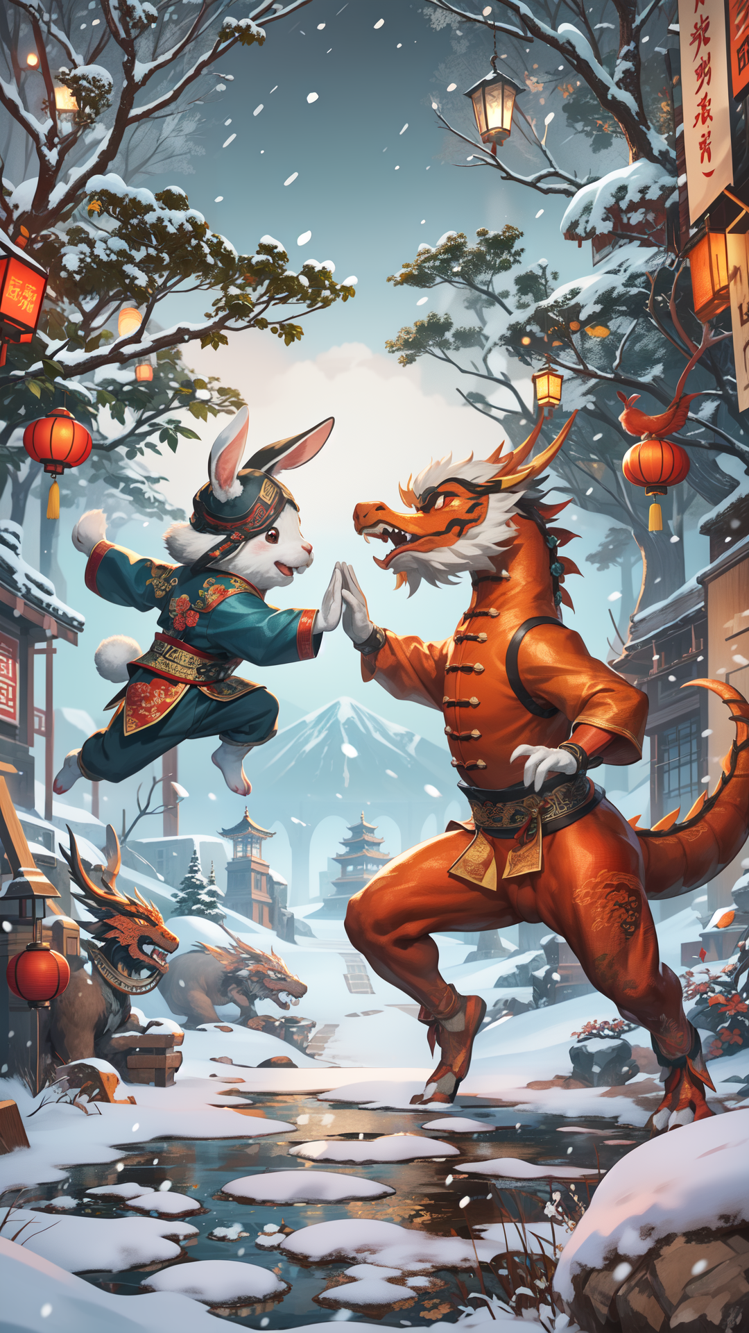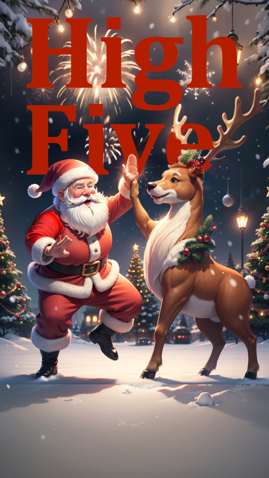 该lora将在画面中随机生成一对击掌的人物, 有情侣感觉的,有闺蜜感觉的,还有美女与野兽感觉的……哈哈……看看你会随机出什么。 对了,有些时候还会制作出一些温馨的瞬间,很适合作为新年的贺图。 我也借这个机会提前祝大家圣诞快乐!新年快乐!