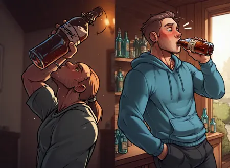 LoRA는 맥주 병에서 마시는 한 명의 인물을 묘사하는 이미지를 개선하려고 시도합니다. 여전히 문제는 발생할 수 있지만, 빈도는 줄어들기를 바랍니다.
