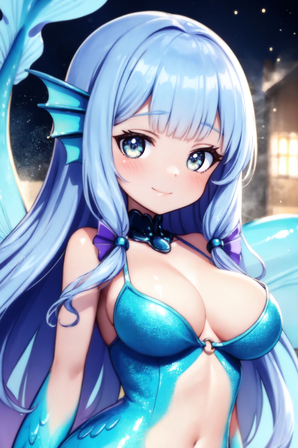 It is probably over trained, the raw imgs look a bit blurry, need prompts' and negs' help, or lower the strength. The "lamia" one will have hairclip from the anime/manga quite a lot, I think that's because I took out some of the eye tags, and trainer believes that is part of the eye, it becomes part of the "lamia" concept...