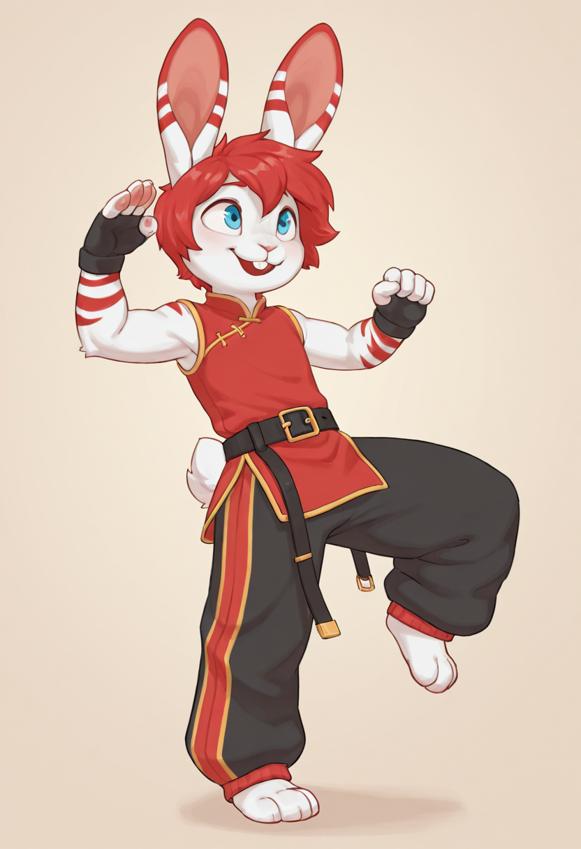 Furry Boy,Rabbit boy,Red hair,red marks on the ears,one-side leg red stripes,white fur,