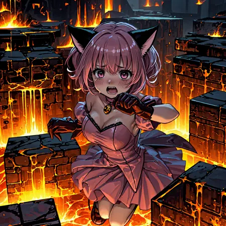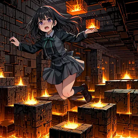 我使用LoRA对一个在熔岩区域中跳跃并跨越漂浮方块的场景进行了训练。该场景主要聚焦于在熔岩中跳跃跨越漂浮的方块。随着“强度”增加,熔岩的红色更加明显。虽然在0.4的设置下也能实现这种效果,但0.6的设置能产生更自然的提示。此外,在此图像中,我使用了LCM,并将采样方法设置为Euler a。