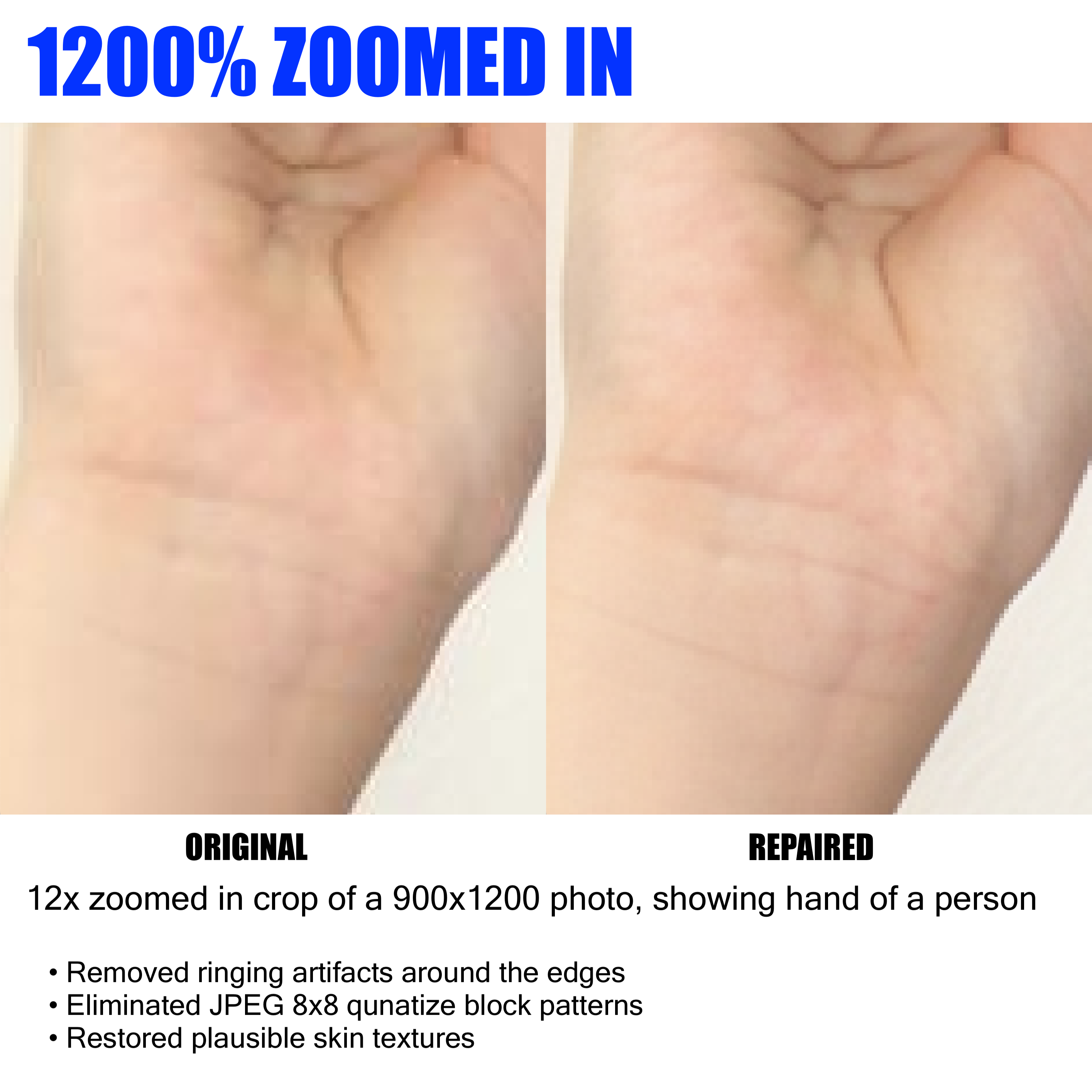이것은 JPEG 아티팩트를 제거하고 실제 사진의 원래 텍스처를 복원하는 것을 목표로 하는 개념 증명 LORA로, 피부 텍스처에 특화되어 있습니다.