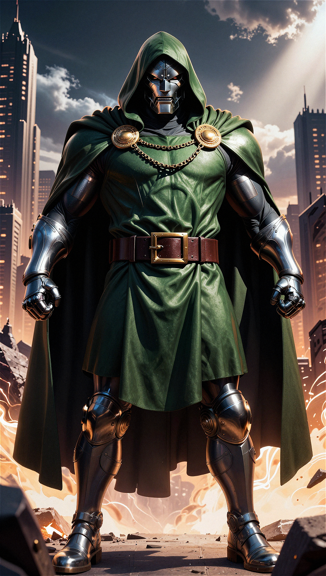 ドクター・ドゥーム(本名:ヴィクター・フォン・ドゥーム)は、マーベル・コミックスに登場する主要なスーパーヴィランであり、宇宙で最も知性と威圧感を備えた対立者の一人として広く認識されている。このキャラクターは作家スタン・リーとアーティスト・ジャック・カービーによって生み出され、初登場は『ザ・ファンタスティック・フォー』#5(1962年7月)で、すぐにスーパーヒーローチームの主要な敵、特にリード・リチャーズ(ミスター・ファンタスティック)の宿敵として確立された。フィクションの東ヨーロッパ国家ラトベリアの絶対君主として描かれるドゥームは、権力、知的優位性、復讐への不屈の追求に駆られた天才科学者であり、魔術師である。彼の象徴的な鉄製のマスクと緑色のローブを纏った鎧の裏には、その真の姿が隠されている。