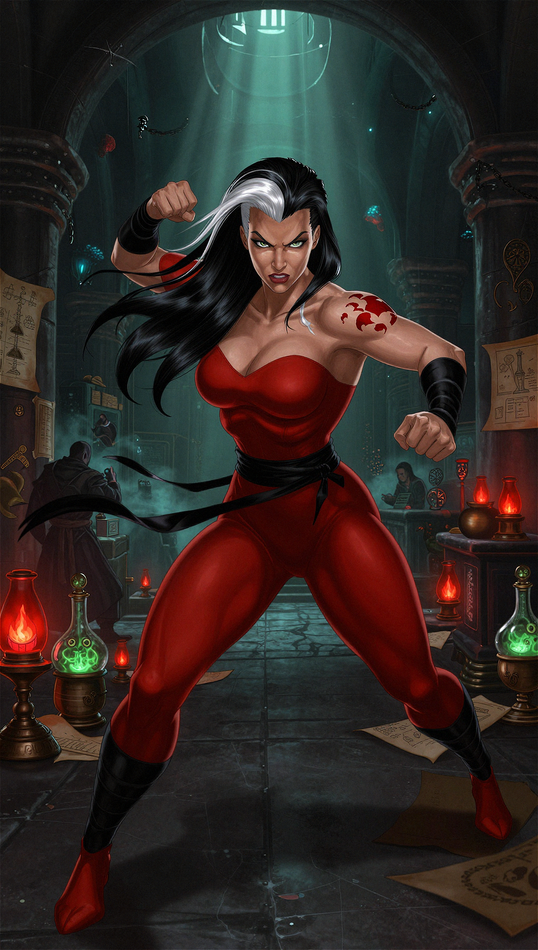 レッドクロウは強力で冷酷な敵として描かれており、バットマンと激しい近接戦闘を繰り広げるほどの熟練した武術家である。さらに、優れた戦術的才覚と指導力も備えている。彼女は多数の作戦員を指揮し、生物学的・機械的兵器を用いた洗練された作戦を展開し、個人的な利益とイデオロギー的極端主義に駆られた計算されたテロリズムを実行する。キャット・マルグレヴが声を担当し、その演技は威圧的な存在感と揺るぎない決意を強調し、シリーズのオリジナル・フェム・ファタールの一人として確立された。