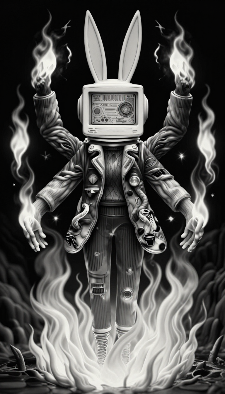 RubberHose Noir は、ヴィンテージのラバーホースアニメーション、アンダーグラウンドコミック、高コントラストのインク插画にインスパイアされたモノクロスタイルのLoRAです。太く丸みを帯びたライン、フラットなベクターシェイプ、強いネガティブスペース、そしてグリットなジン・エスセティックを持つ遊び心あふれる超現実的な構成を強調します。