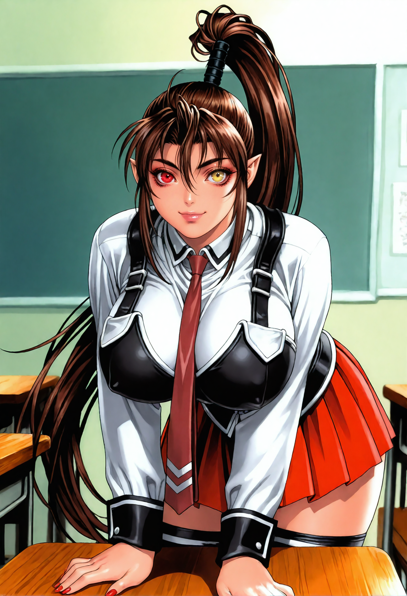 전국 에이스, 전국 블레이드,전국 캐논 세 작품 모두 등장하는 귀도중 여자 은밀요원은, 여주인공인 코요리만큼이나 과장된 신체 비율을 지니며, 요원용 스판 드레스 탓에 코요리의 넓은 미신복보다 더 큰 노출을 자랑한다.