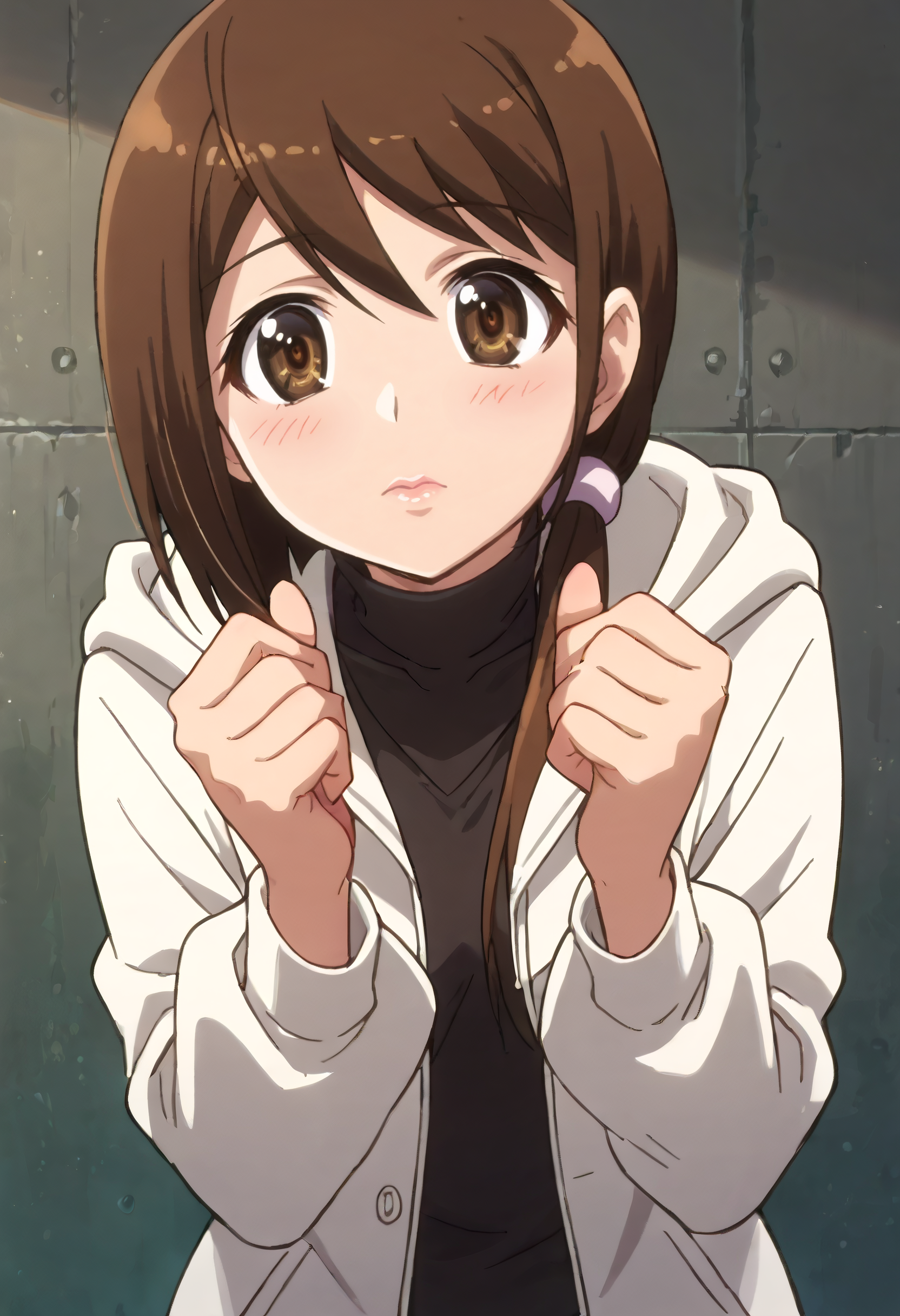 KNZJun, 갈색 머리, 갈색 눈, 긴 머리, 어깨에 걸친 머리, 토끼 꼬리, 낮은 토끼 꼬리, 옆 토끼 꼬리, 눈 사이의 머리,