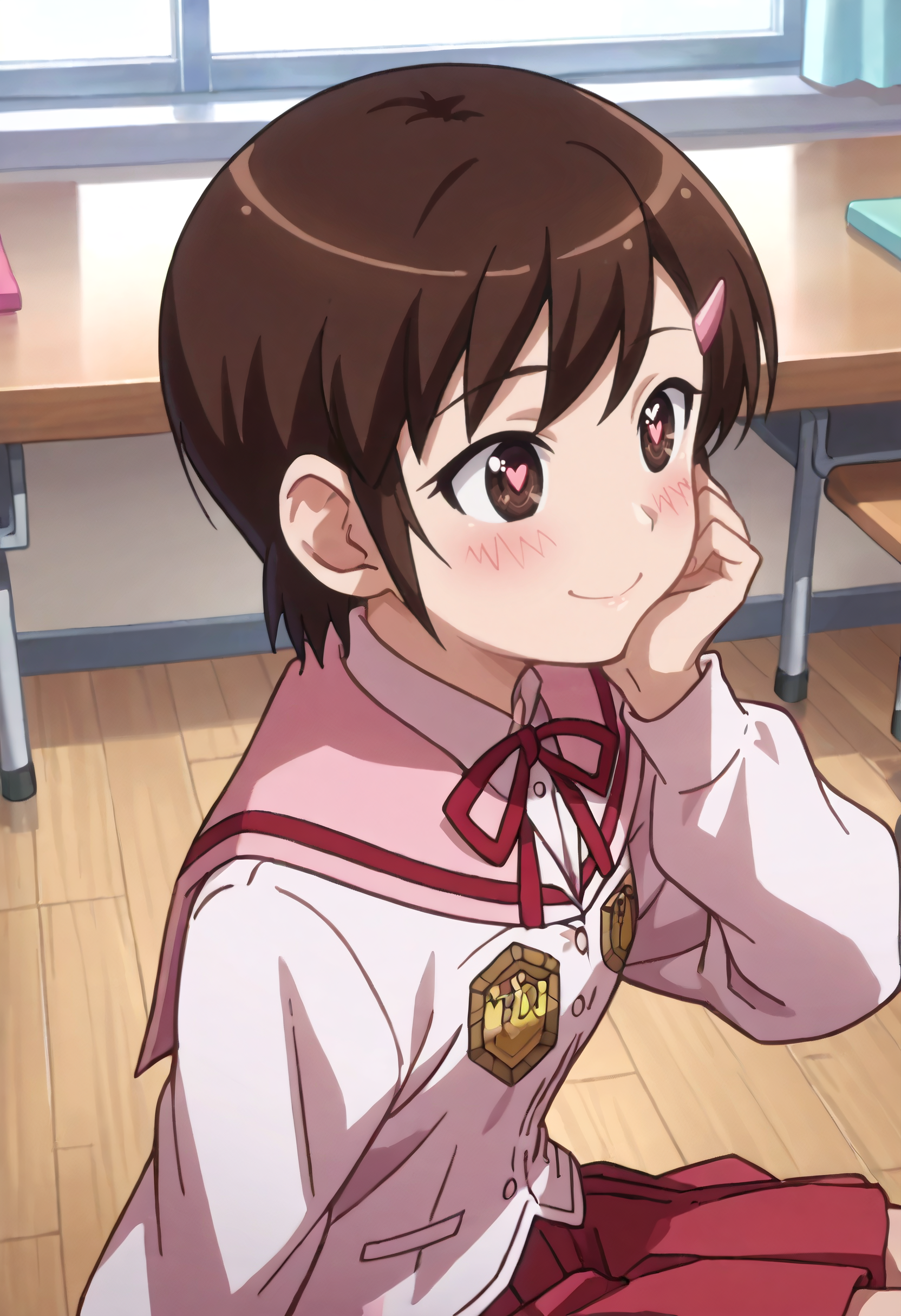 ChihiroSchoolC, 학교 유니폼, 머리핀, 머리 장식, 리본, 치마, 짧은 소매, 풍성한 소매, 셔츠, 흰 셔츠, 세라후쿠, 목 리본, 빨간 리본, 빨간 치마, 주름 치마,